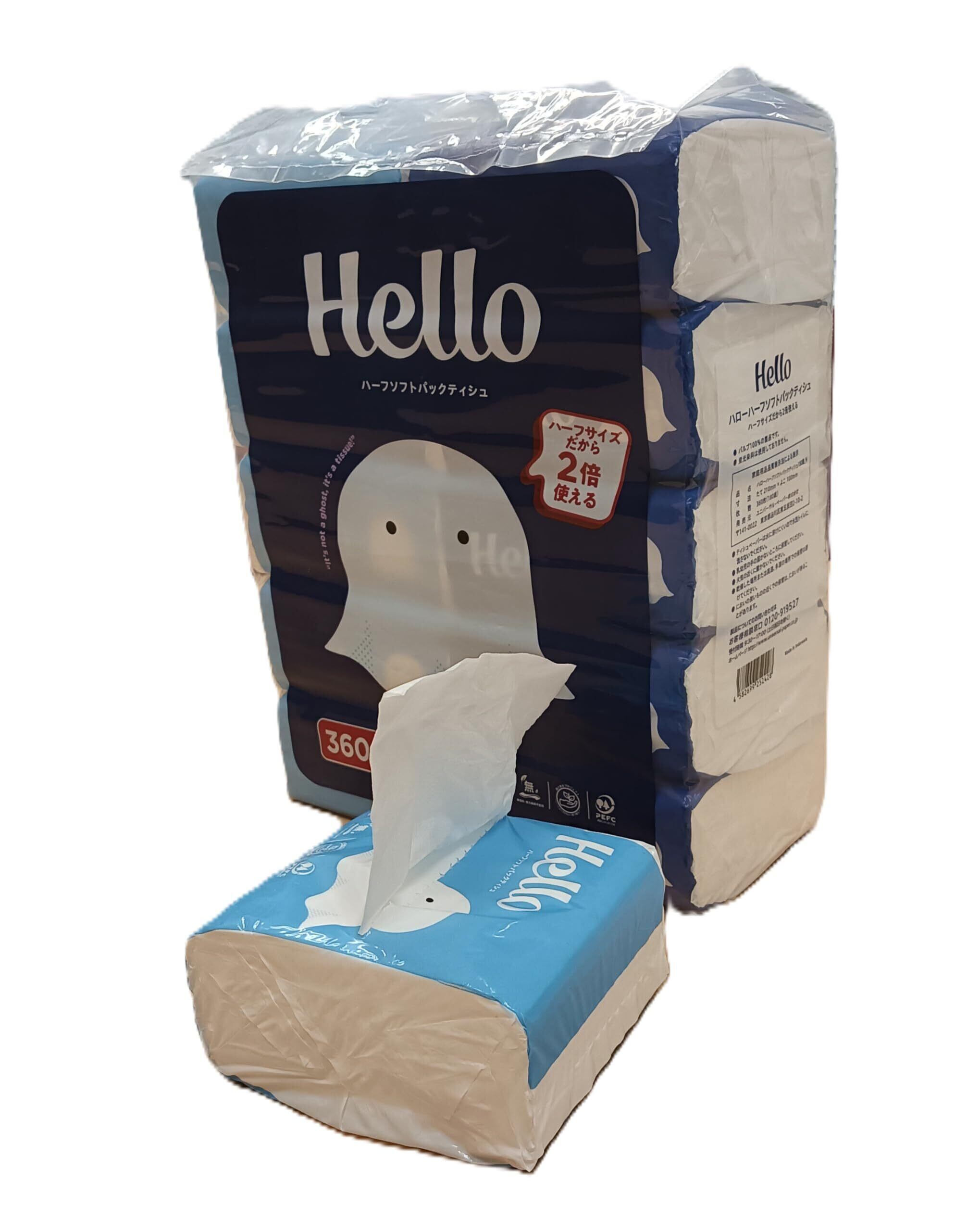 【在庫セール】【ケース販売】ハロー ソフトパックティシュペーパー ハーフサイズ 180組10個 x 12パック 5242