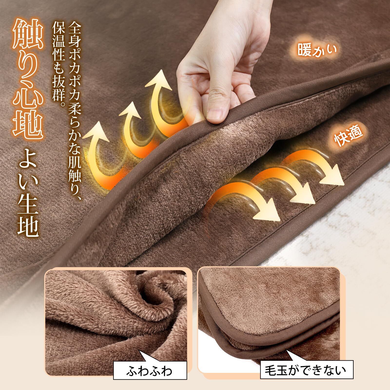 ✨【フランネル素材·ふわふわ電気ひざ掛け】Sugeko電気ひざ掛けは両面フランネル素材を採用しており、柔らかくて肌触りが良いです。従来品と比べて、Sugeko電気ひざ掛けは保温性と厚さが向上しました。ふわふわした素材により優れた断熱性で布団内の暖かさを保ち、電気を入れなくても、ただ体にかけているだけで暖かさを感じられます。寒い季節に冷えた身体や布団を暖め、心地良い眠りを導きます!