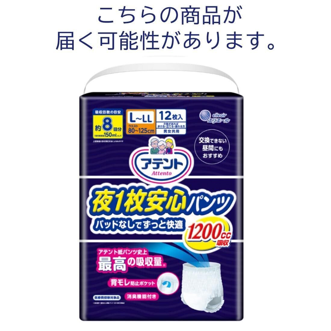 アテント パンツL 夜1枚安心パンツ 36枚(12枚×3) 8回吸収 パッドなしでずっと快適 うす型 男女共用 【ケース販売】