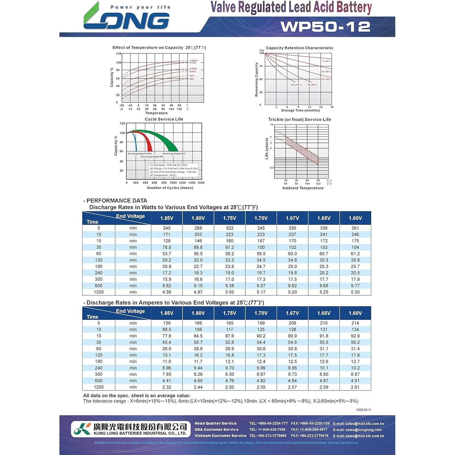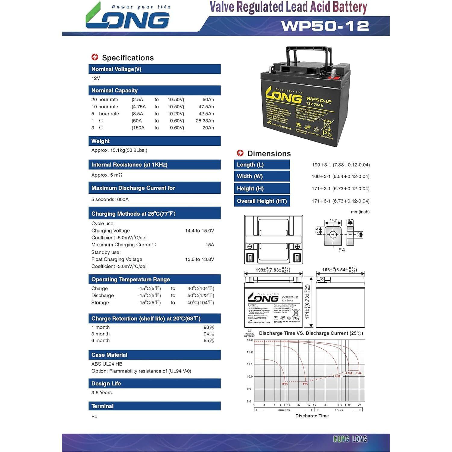 LONG 12V 50Ah 高性能 シールドバッテリー WP50-12 WP50-12