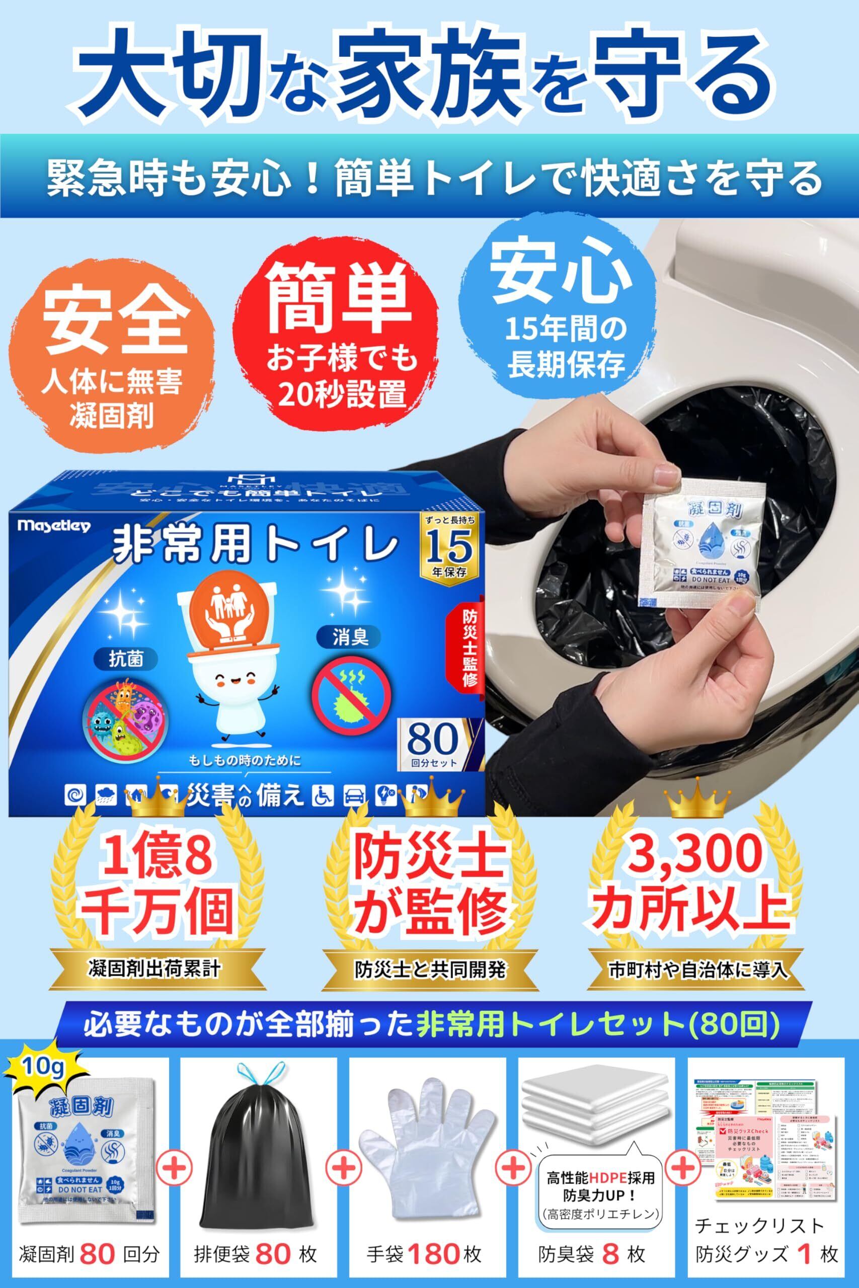 【2022最新】MASETLEY 簡単トイレ 非常用トイレ 簡易トイレ 携帯トイレ 防災トイレ 災害用 防災グッズ【防災士監修・抗菌消臭・15年保存】80回分(ひも付き厚手排便袋付き) | ニコニコSHOP