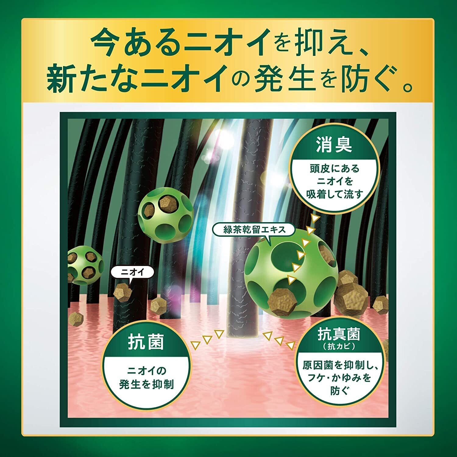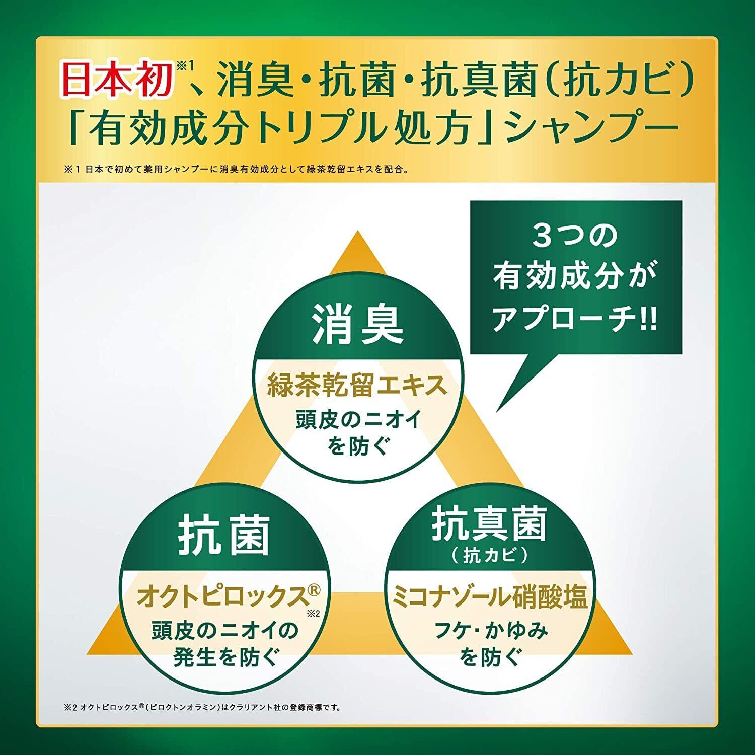 消臭成分緑茶乾留エキス、抗酸化・殺菌成分オクトピロックス(R)が頭皮のニオイを防ぎます。
