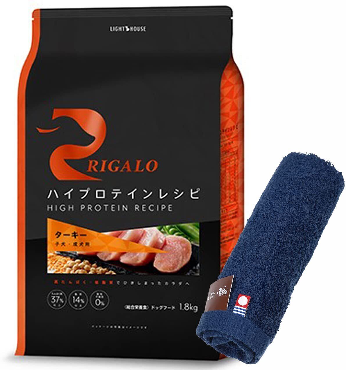 リガロ ドックフード ハイプロテインレシピ 子犬 成犬用 ターキー 1.8kg【犬想いオリジナル今治ハンドタオルセット】【タオルカラー ネイビー】【正規品】
