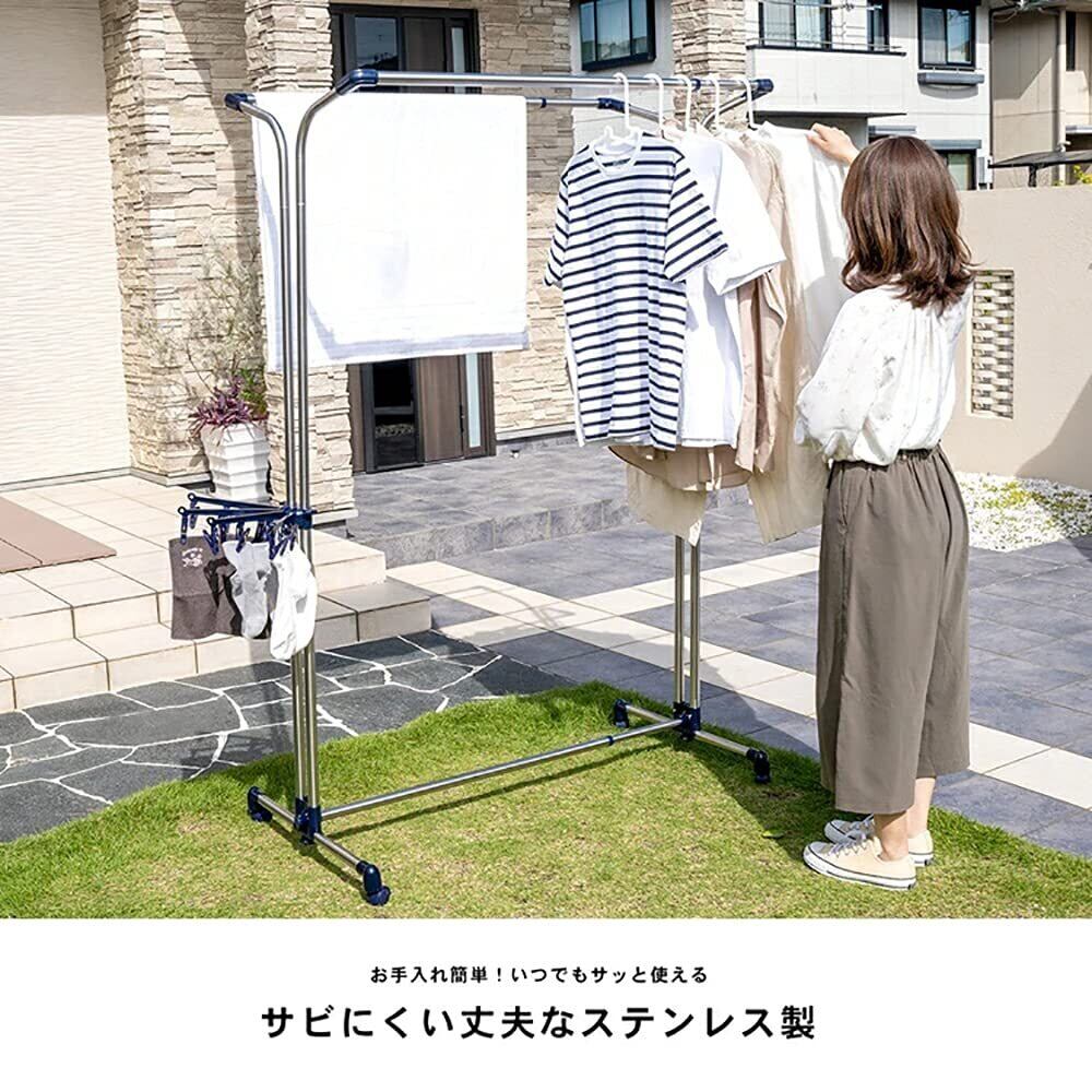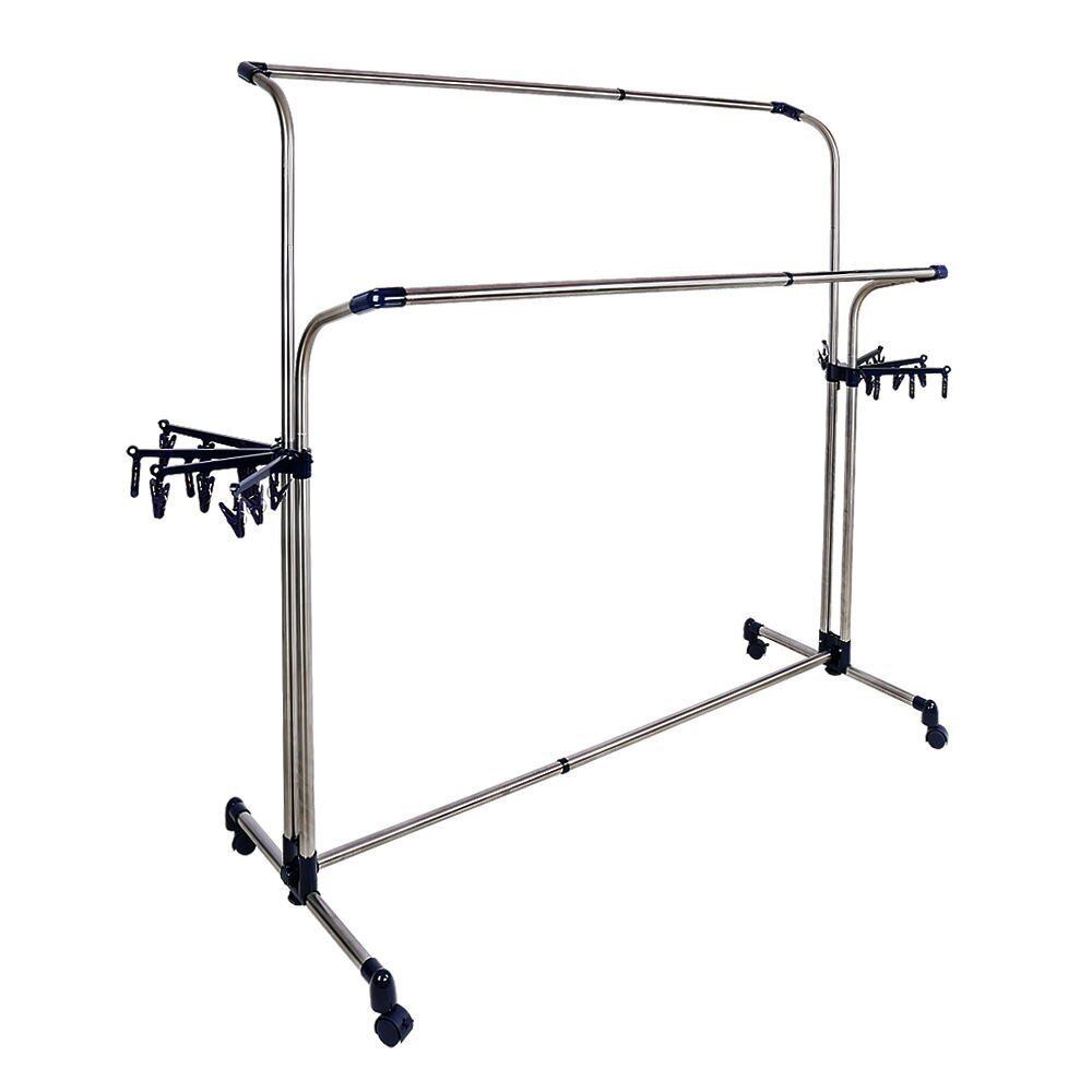 BAOYOUNI ステンレス製ものほし台 ベランダ物干し 物干しスタンド キャスター付 特大洗濯物干し 防錆処理 布団用 布団干し ベランダ 屋外 庭 室内
