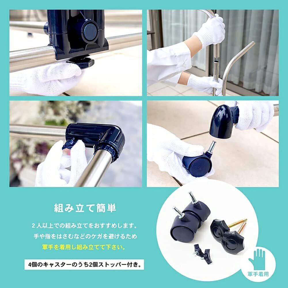 大収納量●横縦自由伸縮●キャスター付き●移動便利●頑丈牢固●工具不要●組立簡単●ピンチハンガー2つ付き