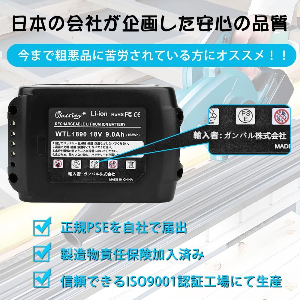 Waitley マキタ互換 18V バッテリー 9.0Ah マキタWTL1890 対応 9.0Ah大容量電池 LEDデジタル残量表示 マキタ18V電動工具用