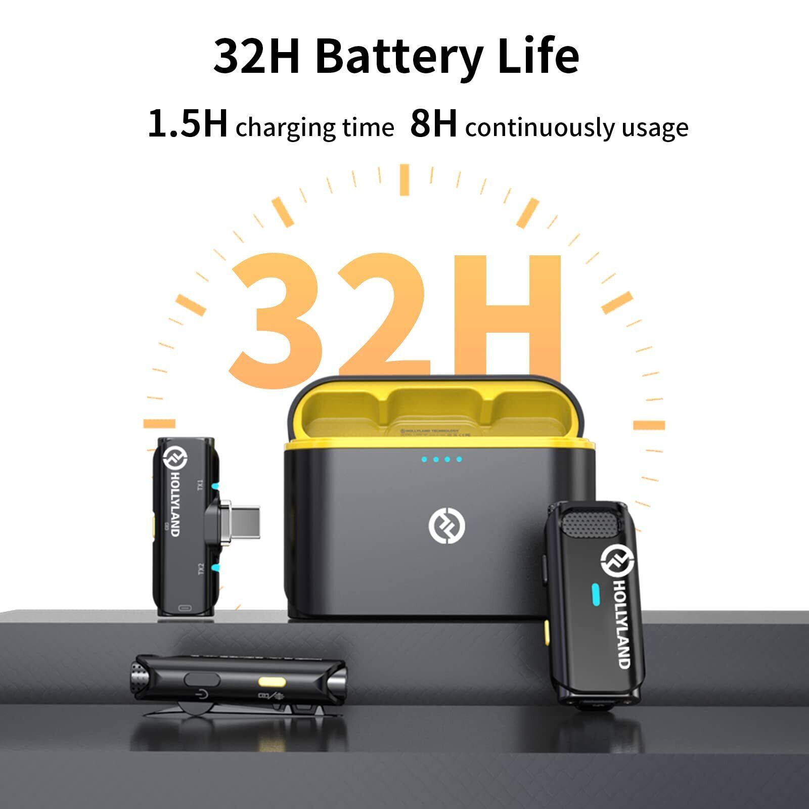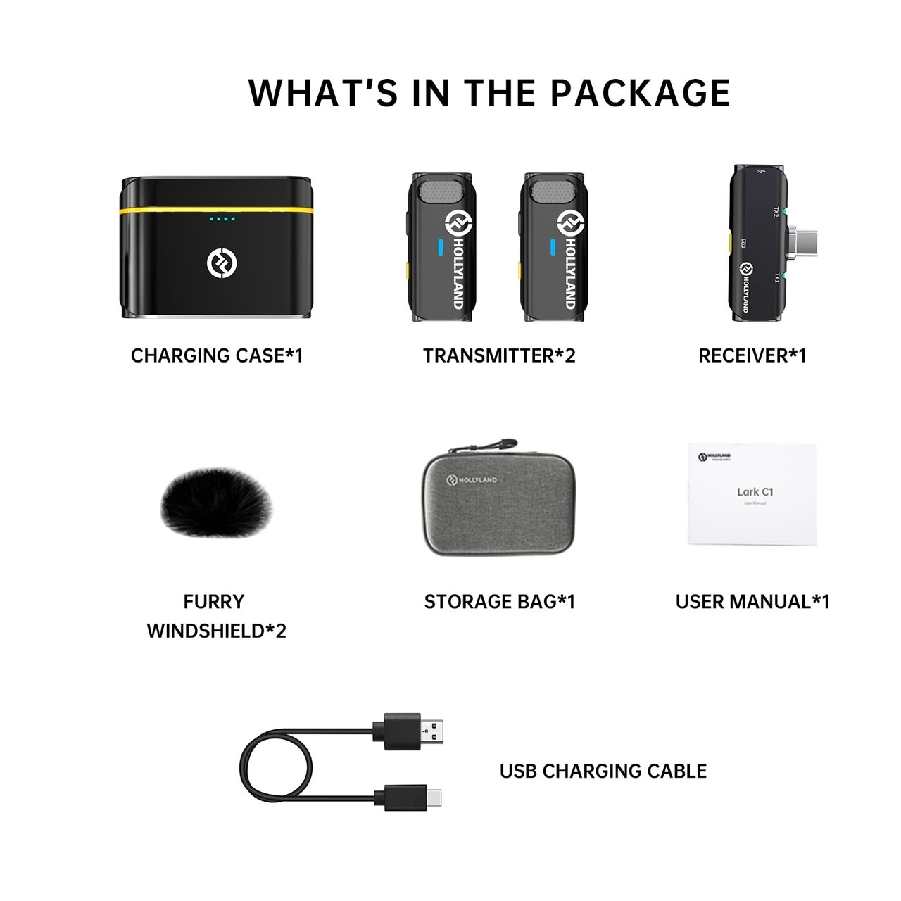 2023DGP金賞-「技適認定済み」Hollyland Lark C1-ワイヤレスマイク-ピンマイク-スマホ外付けマイク Androidシリーズ用対応【8時間連続収音 ・ノイズキャンセリング・デュアルチャンネル対応】収納充電ケース付き&自動ペアリング ピンマイク ワイヤレス 挿すだけの簡単ワイヤレスマイク