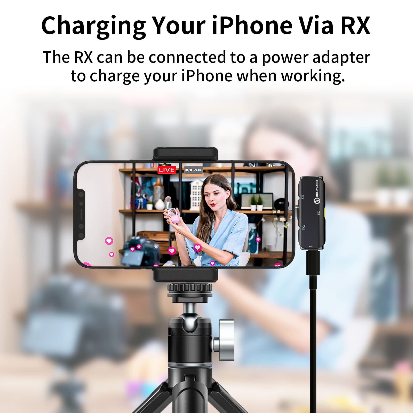 【収音の同時にスマホへ充電】Hollyland独自技術Lark Chargeにより、充電しながら収音できるパススルー機能が搭載、マイクが録音しながらスマホへ充電することも可能です。長時間の収音でスマホのバッテリーが少なくなっても録音を中断する心配が無いのでずっと録音を続けることが可能です。