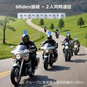 【ハンズフリーで会話ができる】 ボタンを長押す必要なくワンタッチで 相手を切換えハンドフリーで同時に双方が話せる。ペアリンググループの最大個数が6個となり通話は1対1となります。最大6台接続可能で、2台間でハンズフリー会話ができます。(同機種のインカムとペアリングするのを勧めます!)
