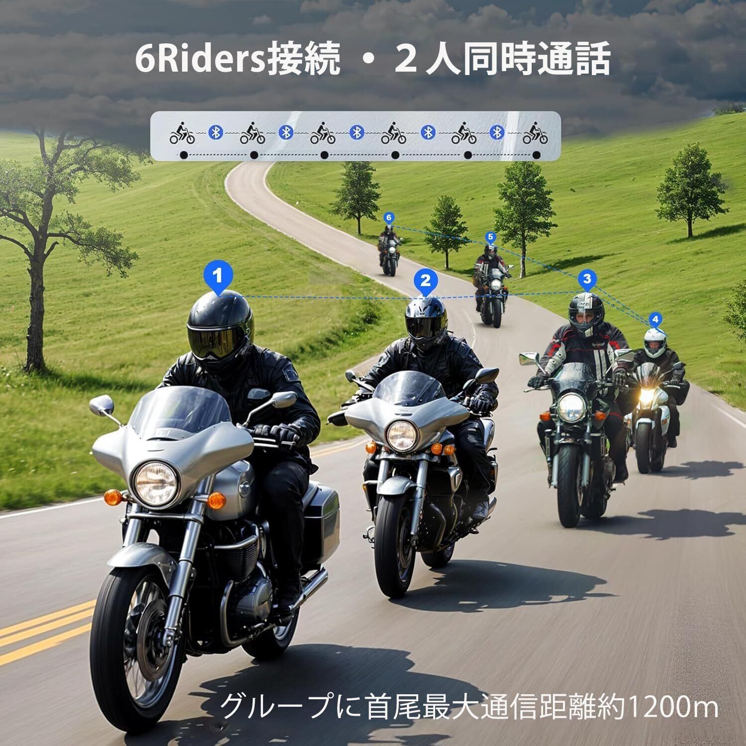 Mihono バイクインカム 6Riders (2台セット) V6Pro昇級版 ツーリング 6人ペアリング 2人同時通話 Bluetooth インターコム 1200M 12時間通話 GPS/DSP機能搭載 イヤホンマイク付き 音楽聞く IP65防水 日本語説明書 「技適認証済」