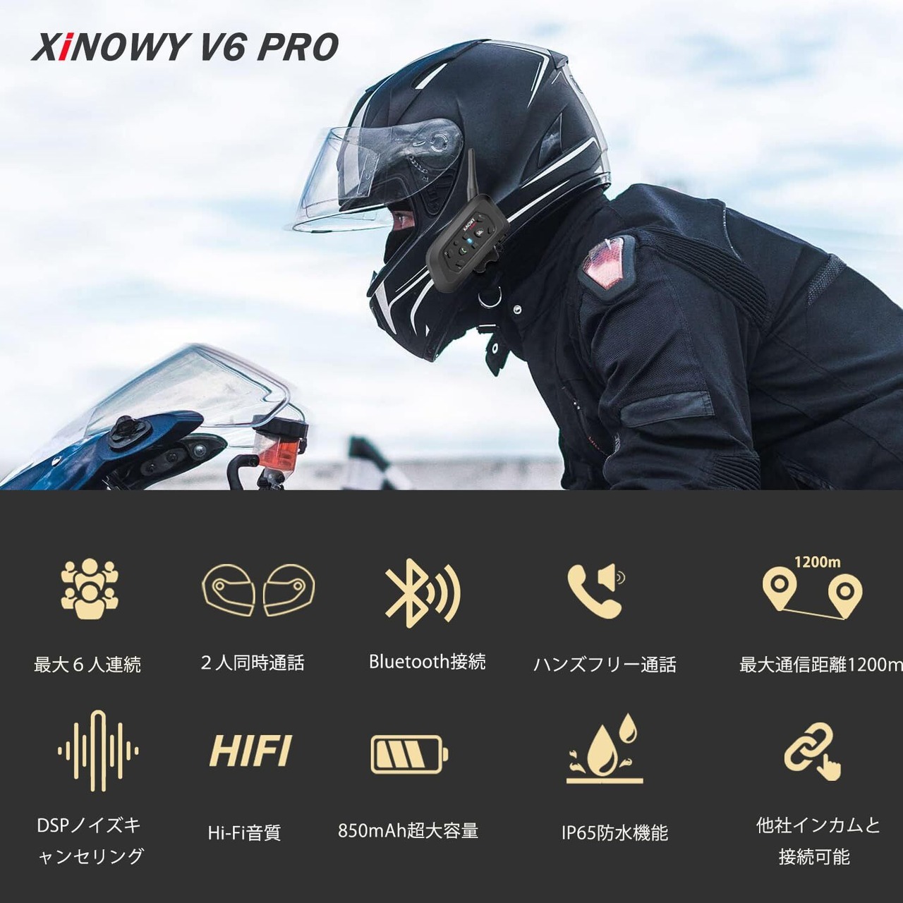 【在庫処分】Mihono バイクインカム 6Riders (2台セット) V6Pro昇級版 ツーリング 6人ペアリング 2人同時通話 Bluetooth インターコム 1200M 12時間通話 GPS/DSP機能搭載 イヤホンマイク付き 音楽聞く IP65防水 日本語説明書 「技適認証済」 | ニコニコSHOP