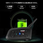 【メインデーター】 大容量850mAhのバッテリーを搭載。300時間待機可能、 最大12時間連続使用できます。 障害物無し直線の場合で最大通信距離は約1200メートルであり、走行中二つバイク間の最大有効通信距離は約500-800メートルに達することができます。