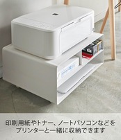 下に印刷用紙やトナーインクを収納できるプリンターラック。