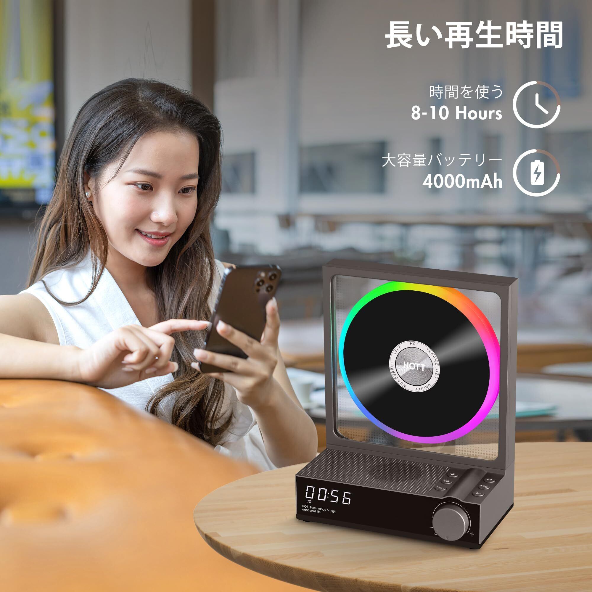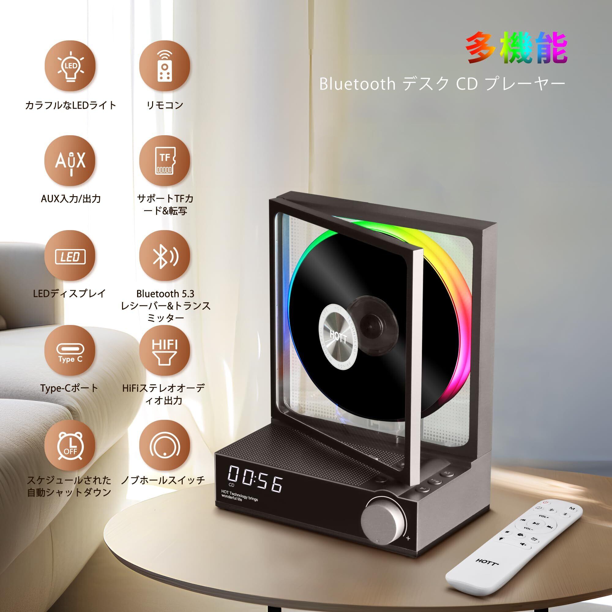 【数量限定】HOTT ポータブル デスクトップ CD プレーヤー、Bluetooth 5.3、LED カラフル ライト、リモコン付き、TF カード、転写、タイマーをサポート、パーティーや家庭用の小型 CD プレーヤー | ニコニコSHOP
