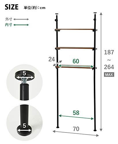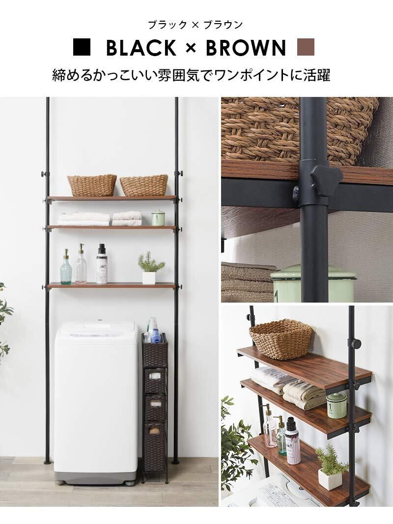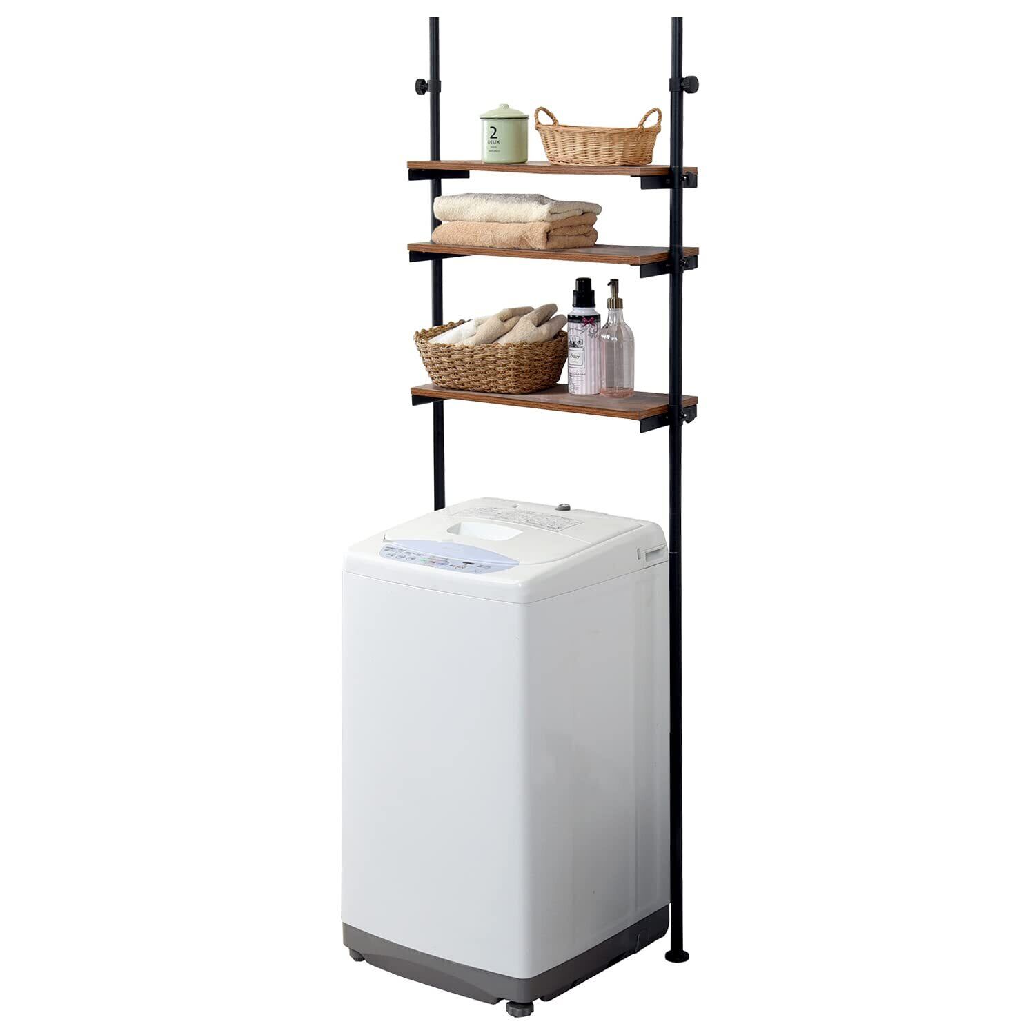 萩原(Hagihara) 3段 ランドリー収納 洗濯機ラック ランドリー 突っ張り 【高さ無段階調節】 木目調 幅70 ブラウン KTR-3153BR