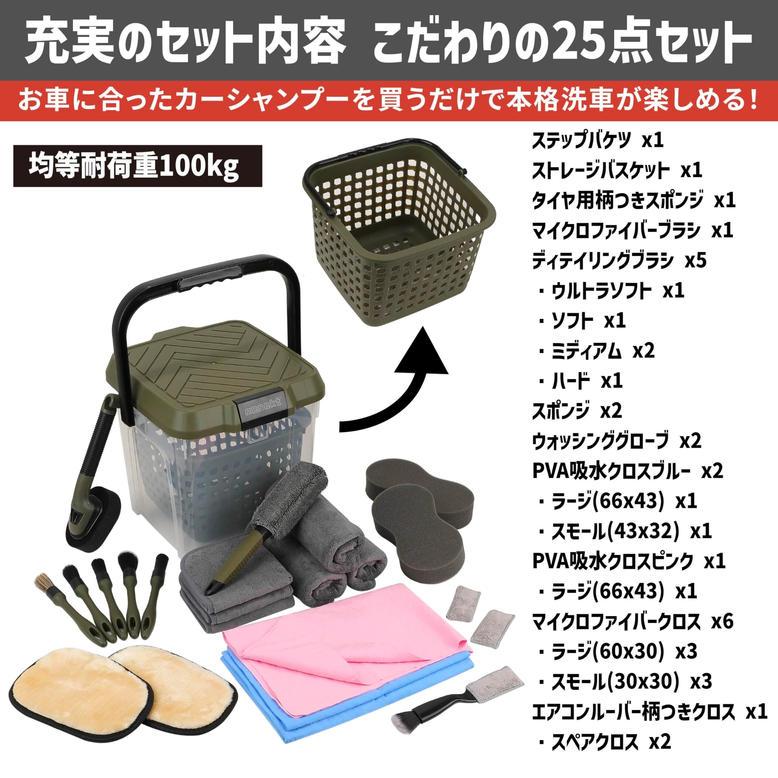 [ネセクト] 洗車セット25点 耐荷重100kg 踏み台バケツ&収納バスケット付属 ミニバン&SUV グリットガード 洗車用品[日本企画3年保証]