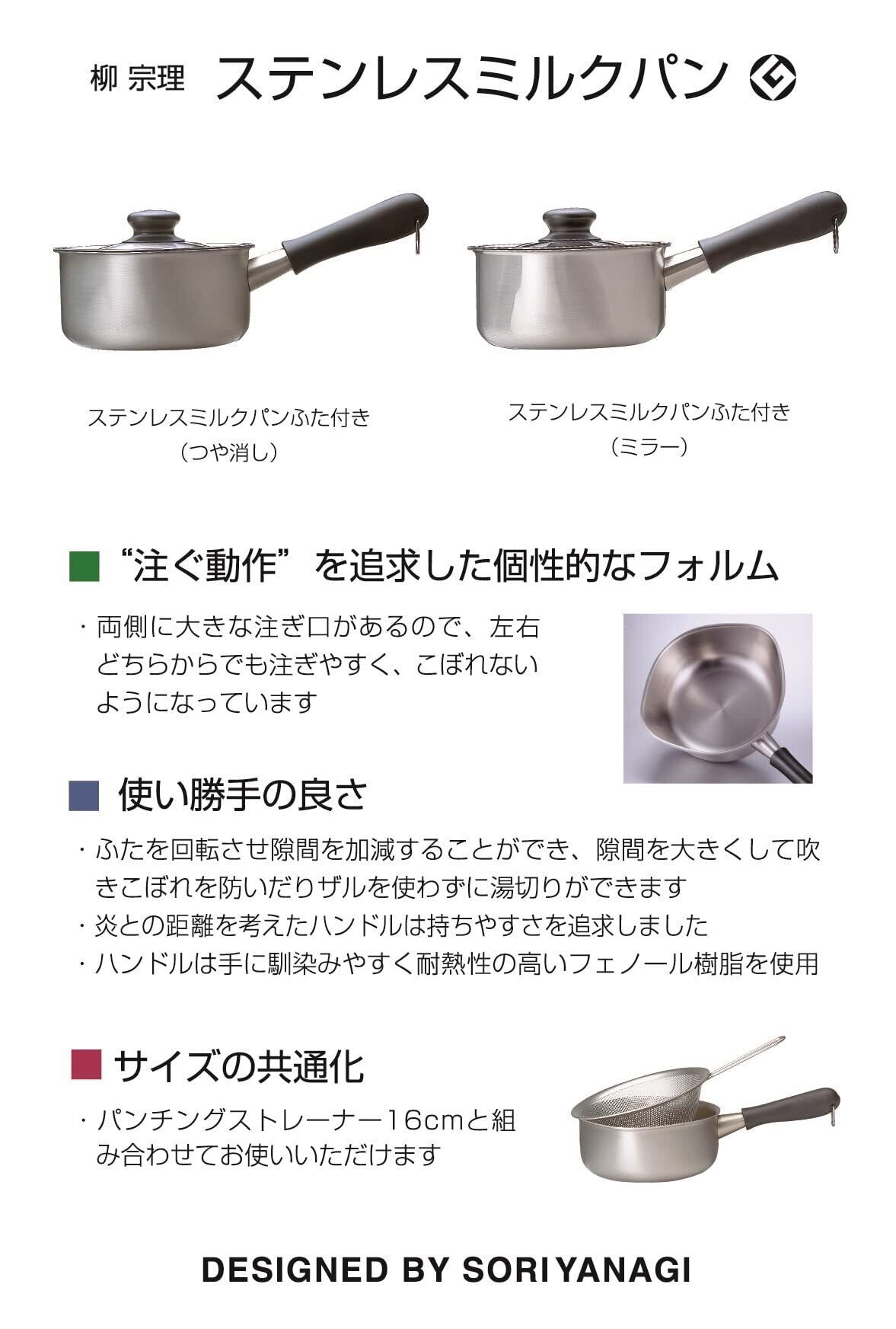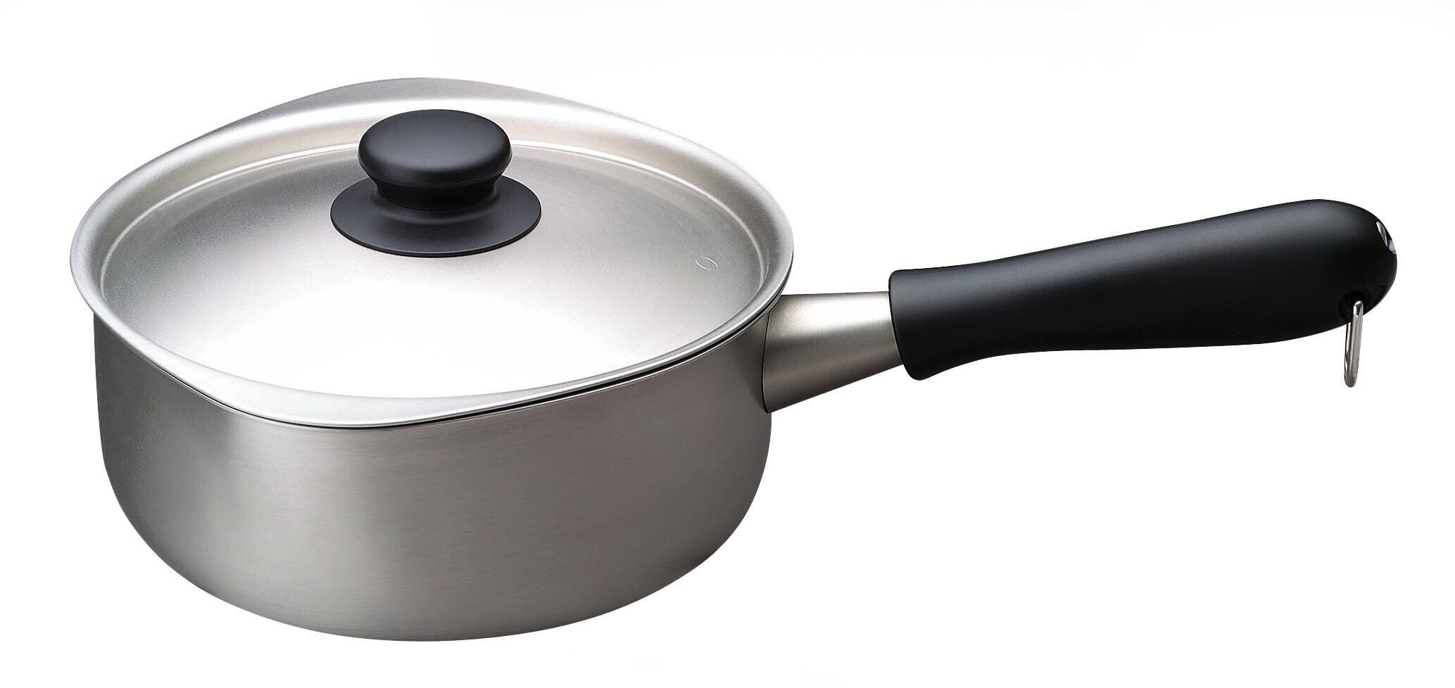 柳宗理(Yanagi Sori) ステンレス片手鍋18cm IH対応 アルミ三層鋼 蓋付き 日本製 食洗機対応 左右に張り出した注ぎ口 利き手を選ばない 注ぎやすいデザイン 水切れ 吹きこぼれを防ぐ ステンレス 雪平鍋