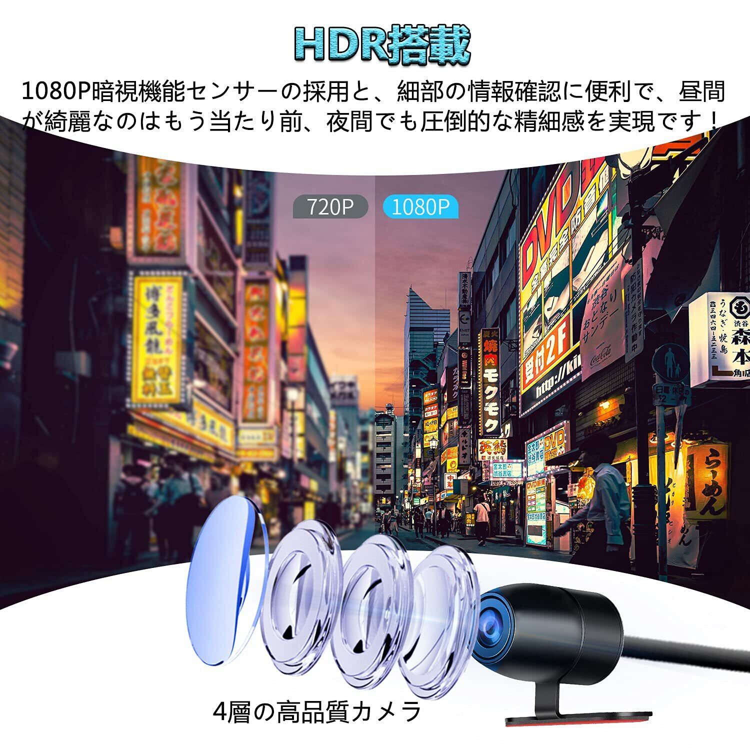 Motocam バイク用ドライブレコーダー 前後防水カメラ IP67 自転車 バイク ドラレコ 1080P 200万画素 WIFI機能 APP対応 携帯連携 煽り運転対策 日本語取扱説明書 D6RL