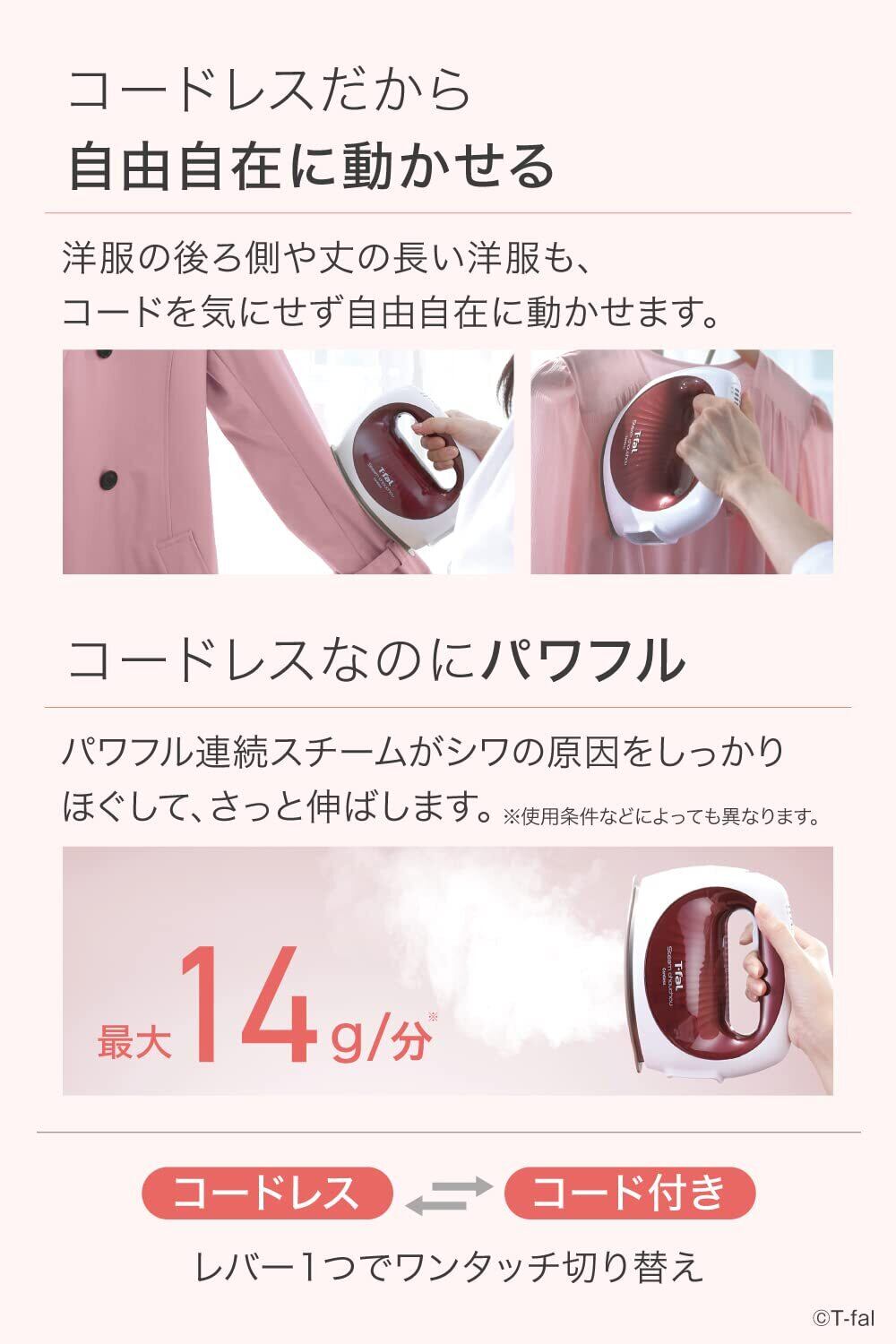ティファール コードレス パワフル連続スチーム 平均約14g/分 衣類スチーマー 「スチーム シュシュ コードレス」 立ち上がり約45秒 スチームアイロン DV7530J0