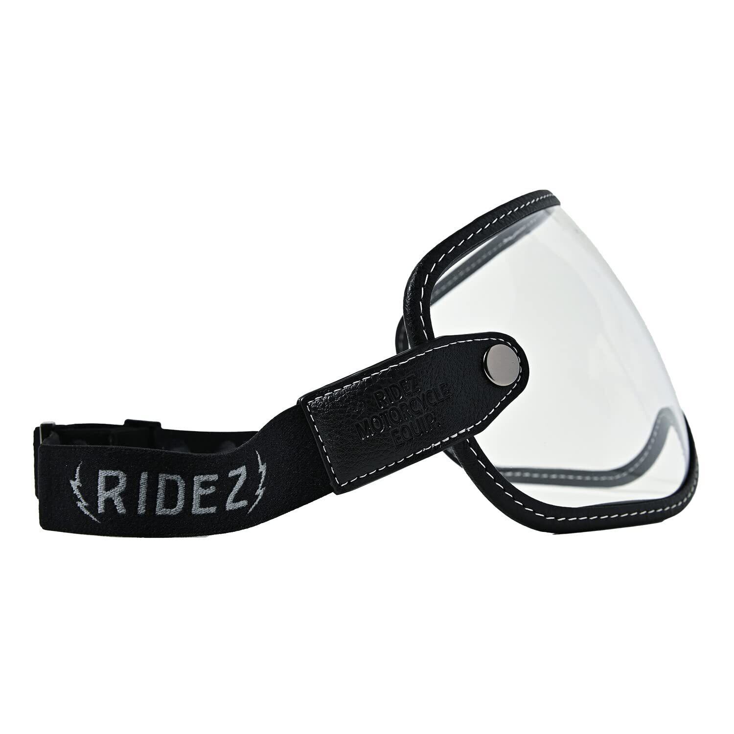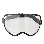 モトゼロバイザーはフルフェイスの開口部に合うように設計されたバイザーです。ゴムバンドはゴーグルと同じようにヘルメットの外側に伸ばして装着します。ゴーグルと異なるのはバイザーは開口部の外側を覆います。それによって視界も広く取りながら、保護範囲も広くなります。ネオレトロ系ヘルメットにもぴったりなスタイルです。