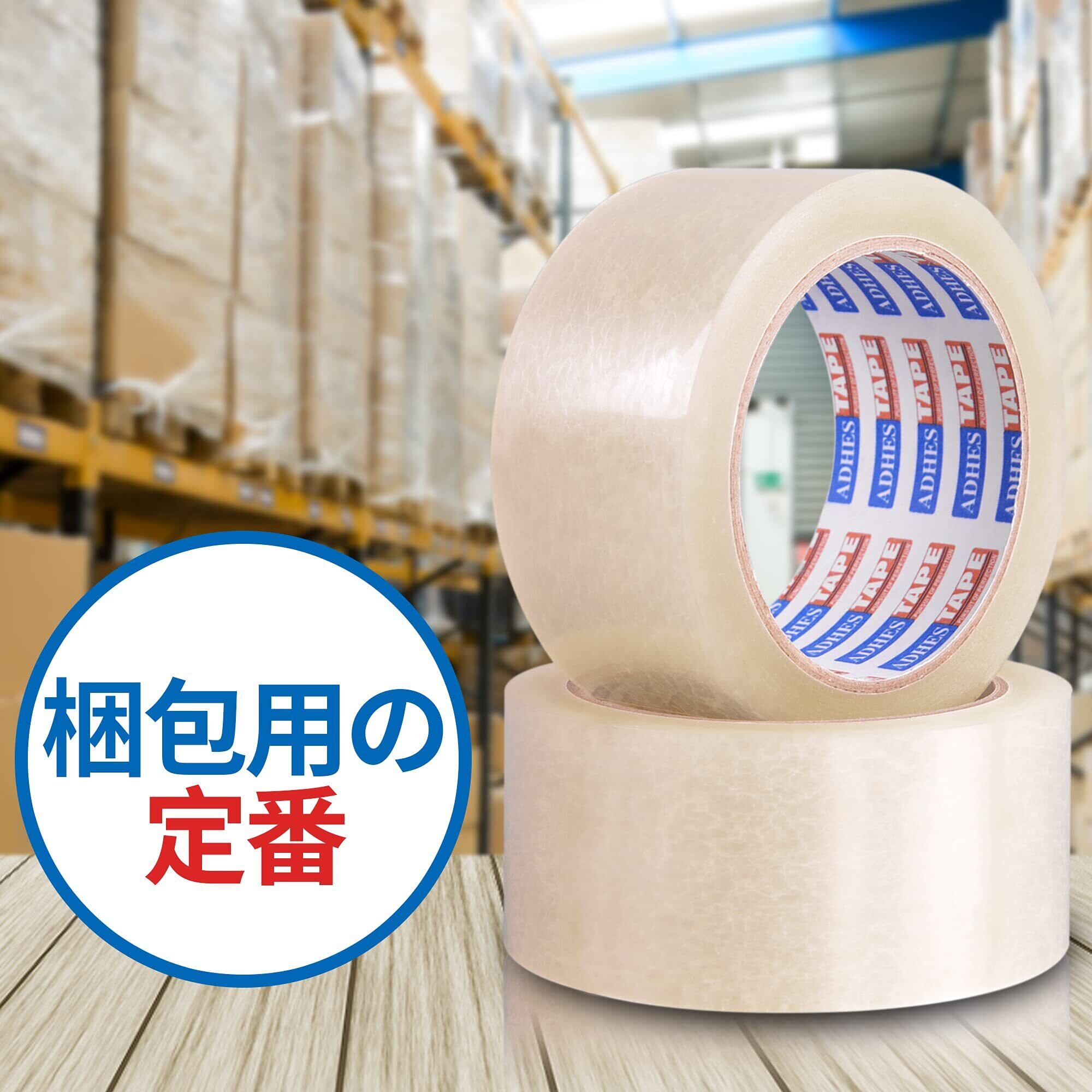 ADHES OPPテープ 粘着テープ 梱包テープ 透明 ガムテープ 引越し 宅配便 重量物用48mm×55m 72パック入り 1個ディスペンサーが含まれ