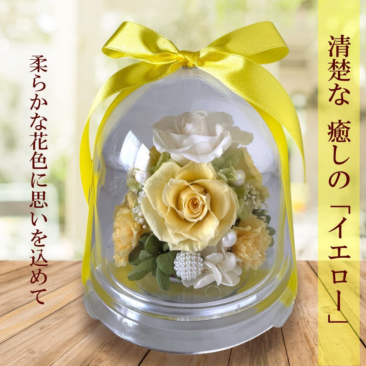 フローリストレマン プリザーブドフラワー 誕生日 米寿 喜寿 黄色 お祝い 長寿祝い プレゼント ドーム 花 バラ (イエロー)
