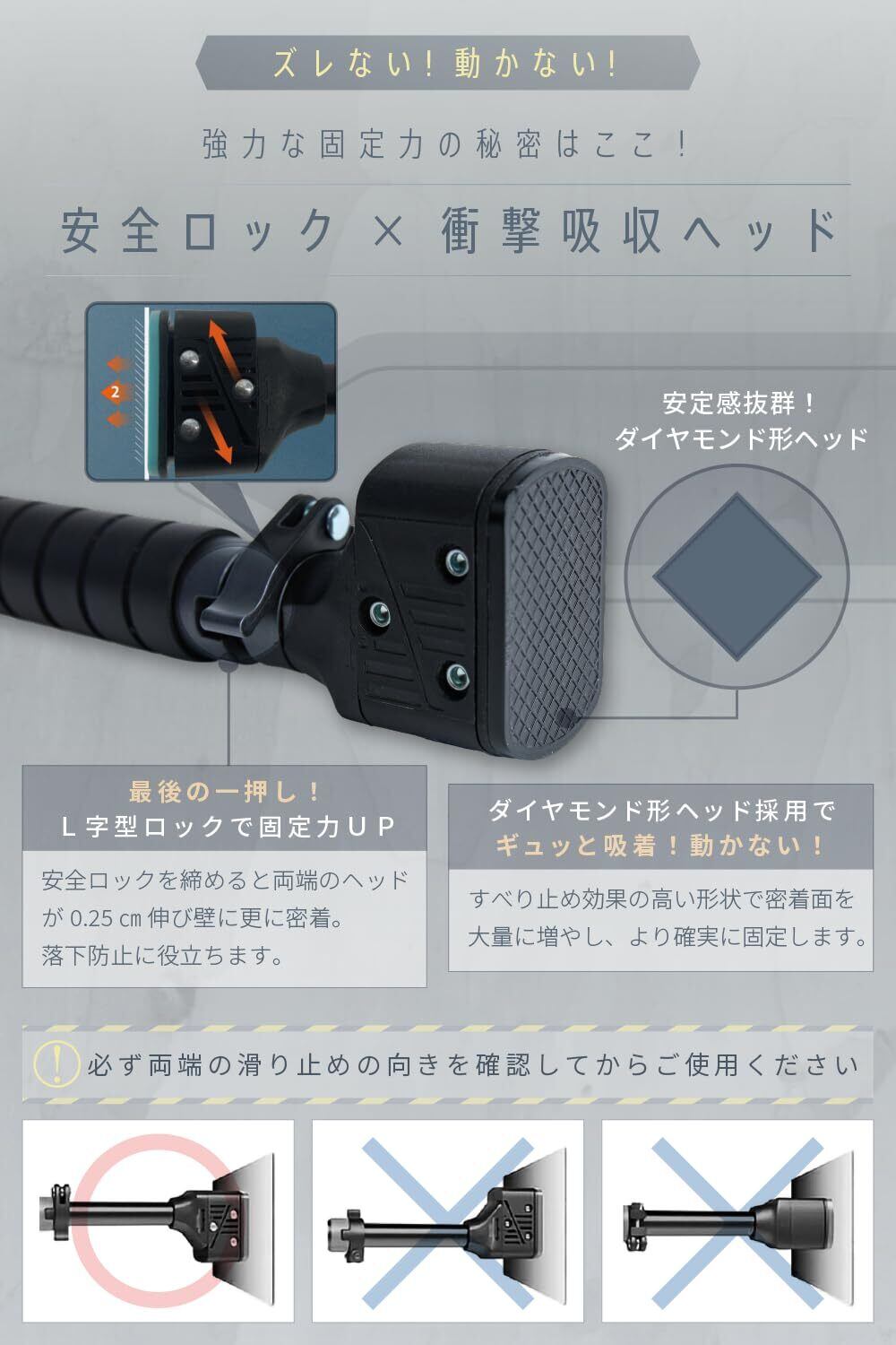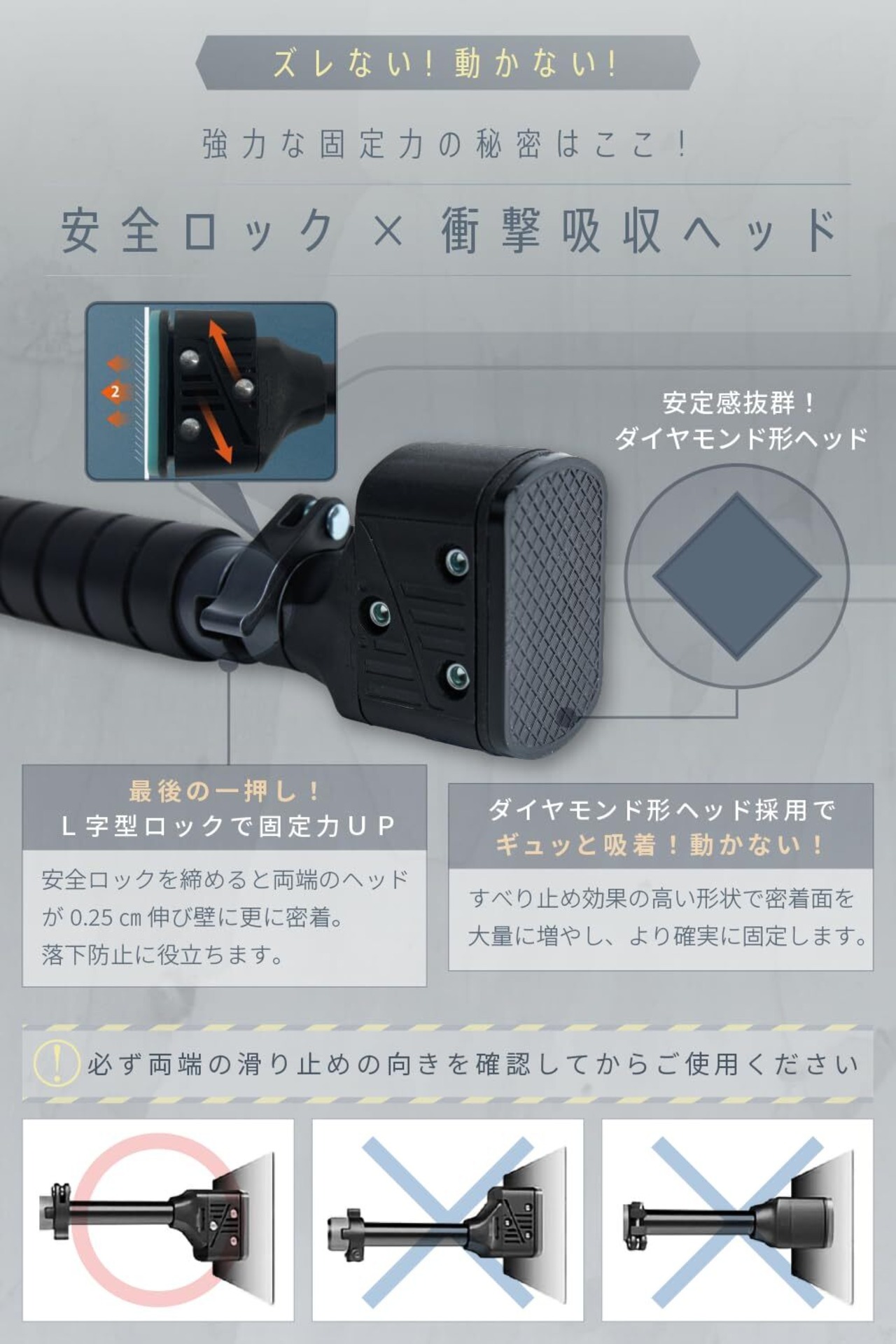 【衝撃吸収ヘッド】固定部分は滑り止め効果の高い密着面でより確実に固定します。