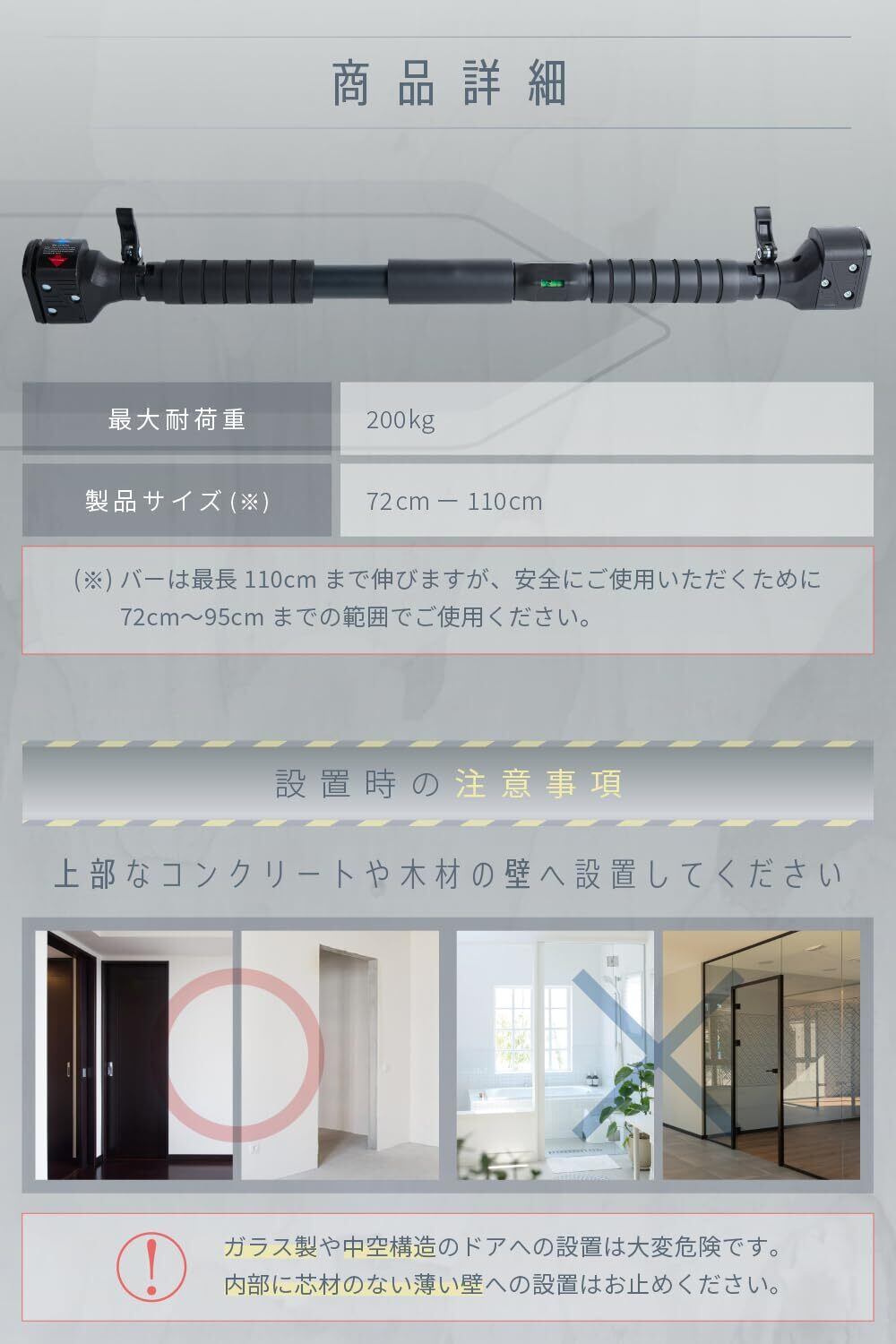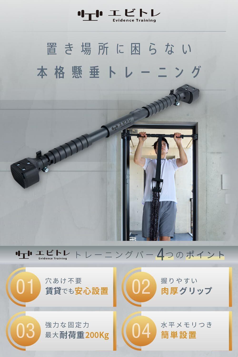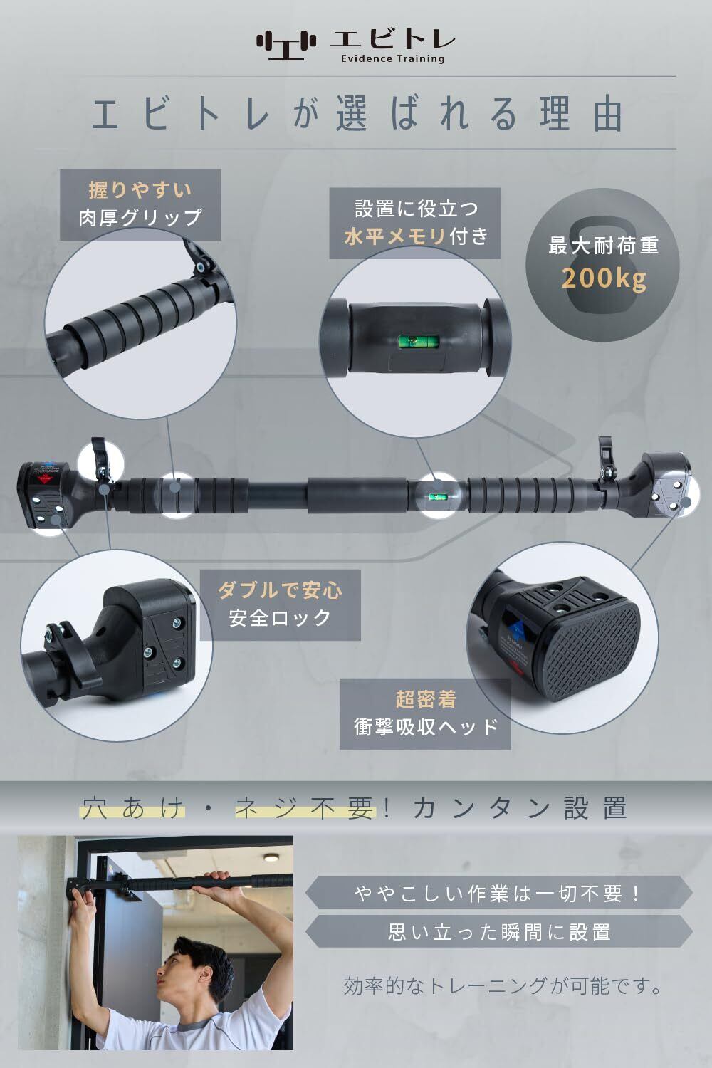 エビトレ 懸垂バー 懸垂棒 ぶら下がり健康器 懸垂マシン ドアジム チンニングバー