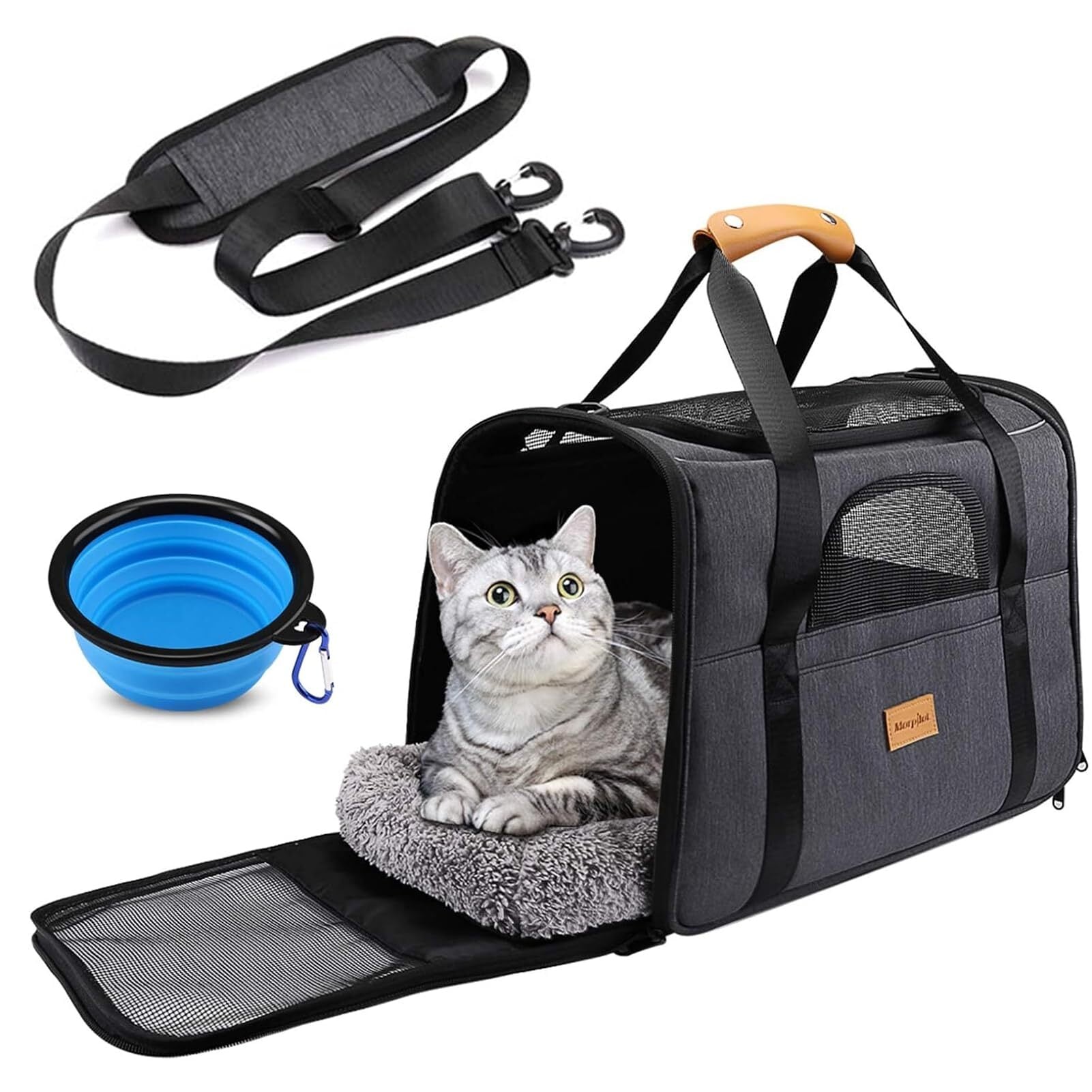 【特価商品】Morpilot ペットキャリー 猫 きゃりーバッグ 4way ショルダー 中・大型猫・小型犬・うさぎ用 リュック 折りたたみ 通気性 臭気がない 引っ掻き傷に強い 車載/ドライブ/キャンピング/旅行/通院/災害避難用 猫 バッグ (マット/飛び出し防止リード/猫食器付き) (グレー Mサイズ:43*28*35cm) | ニコニコSHOP