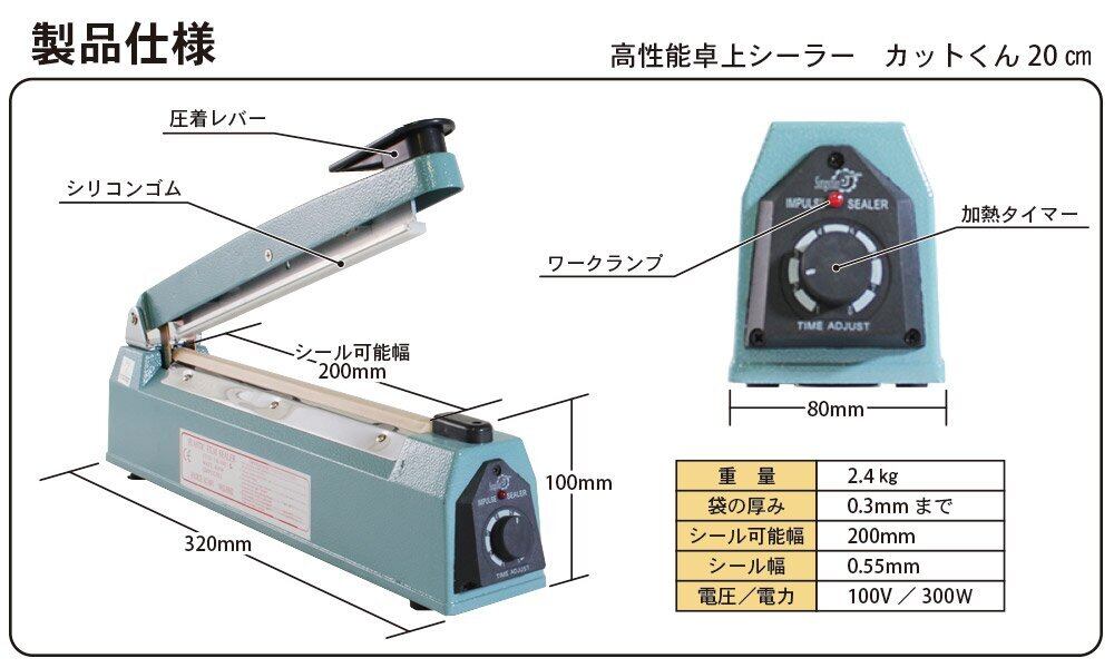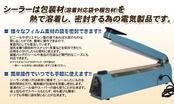 [シール幅]200mm [シール巾]2.4mm [シール可能フィルム厚]0.3mm以下 [溶接時間]最大1.5秒
