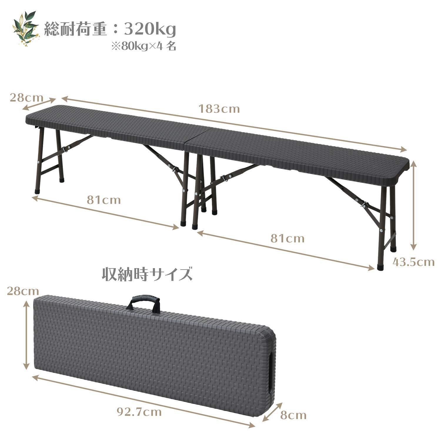ガーデンマスター(Gardenmaster) 折りたたみガーデンベンチ 幅183×奥行28×高さ43.5cm ウィッカー調 お庭 ベランダ テラス バルコニー ガーデンマスター ダークブラウン HFB-1828