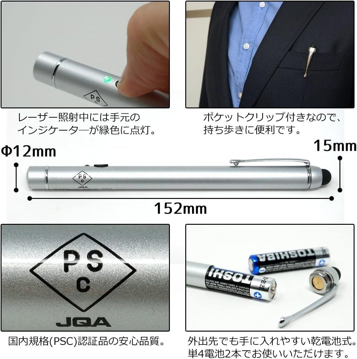 POLARIS レーザーポインター 緑 グリーンレーザーポインター シルバーモデル 緑レーザー 国内規格PSC認証品 RB-18G プレゼンテーション (3)