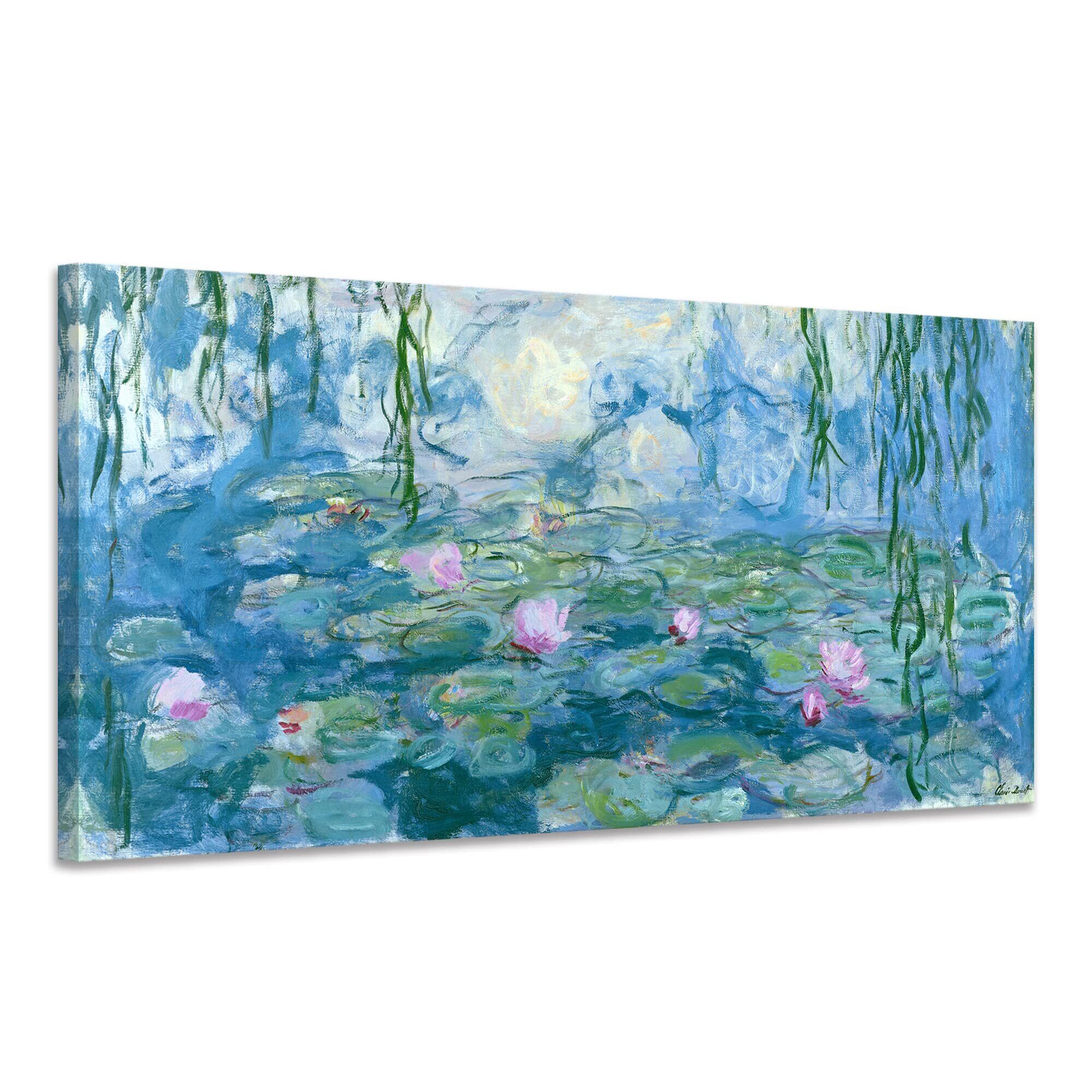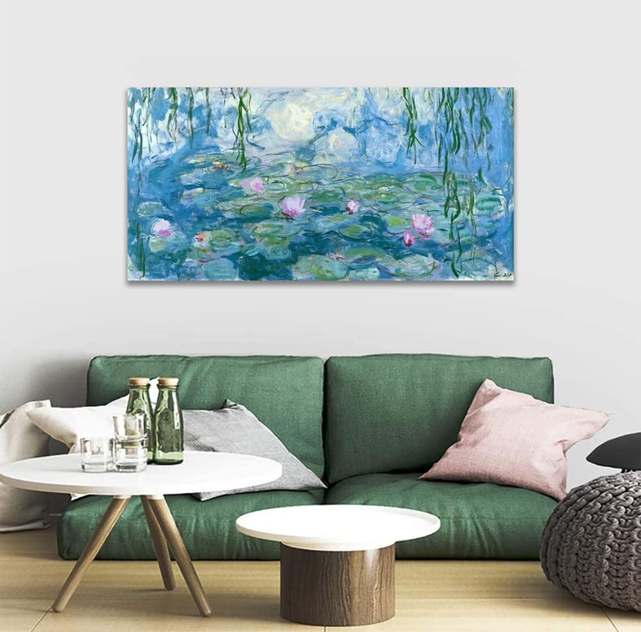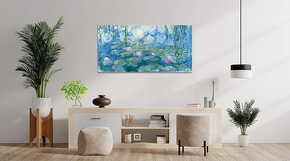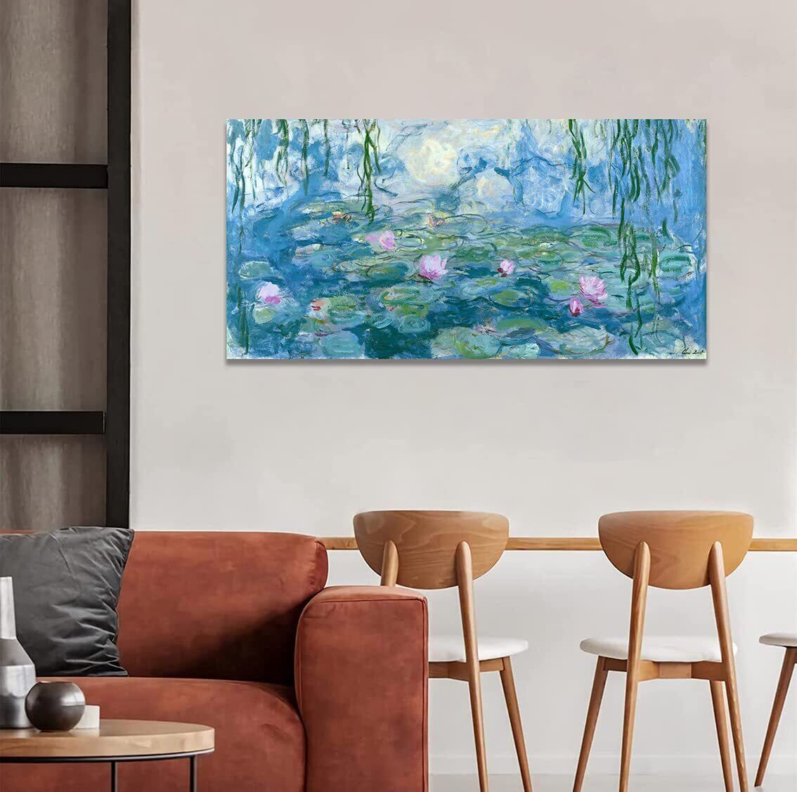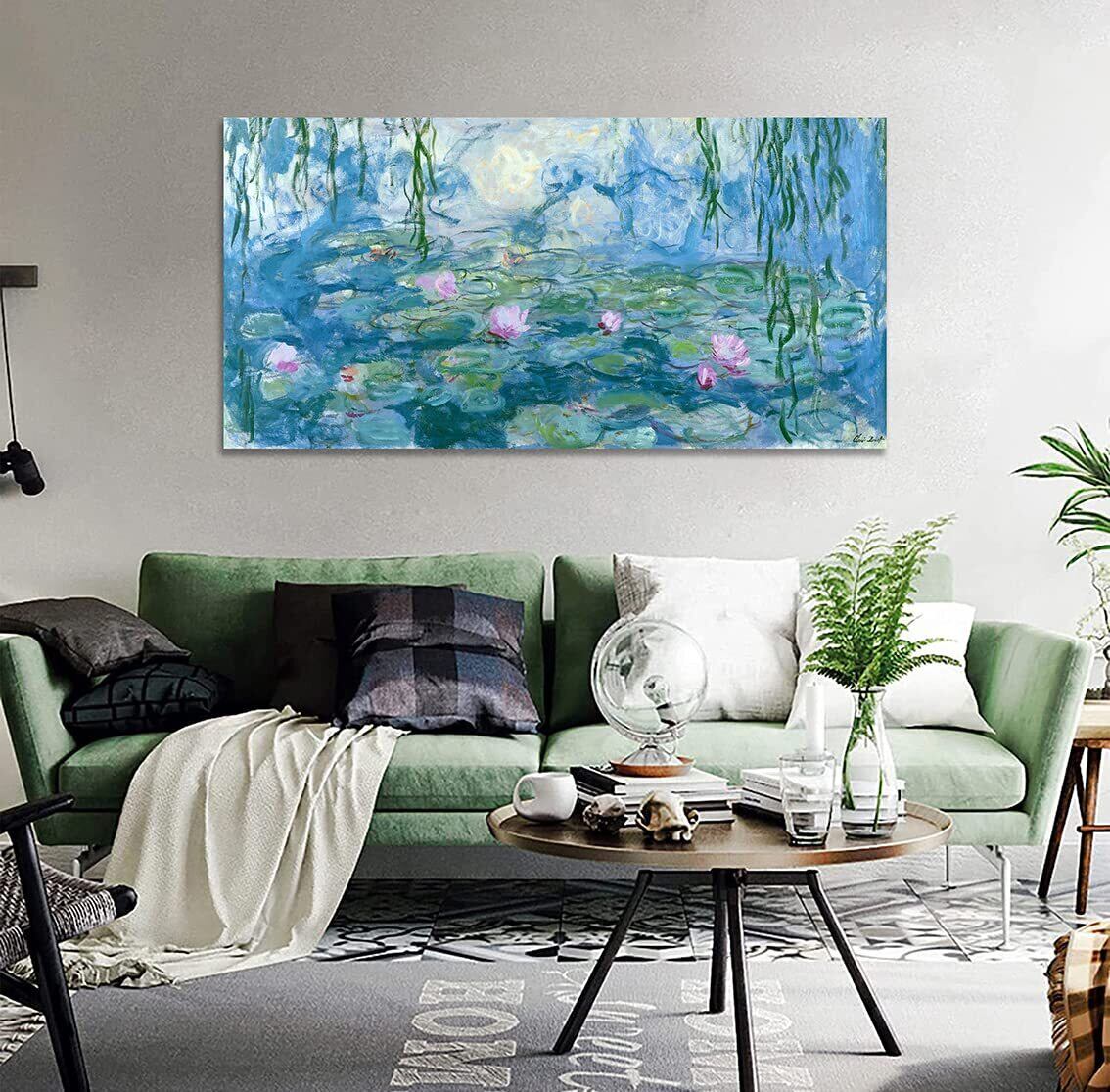モネ 睡蓮 アートパネル 花 ポスター複製画 油絵風 大型 絵画 アートフレーム お風呂 風水 玄関 木枠付きの完成品 (40x80cm x1Pcs)