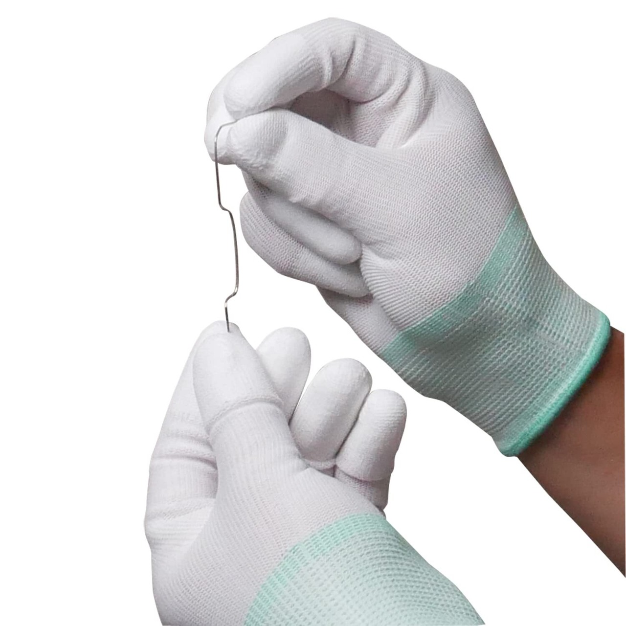 白の13ゲージ原手の指先にウレタン樹脂をコーティングしました。指先のみのコーティングなので、蒸れにくく細かな作業に最適です。