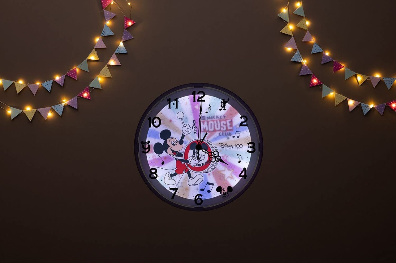 リズム(RHYTHM) ディズニー 100 周年 Disney 100 (ミッキーマウス) 掛け時計 暗くなると文字板が変化 静音 白 Φ28×5.2cm 8MG817MC72
