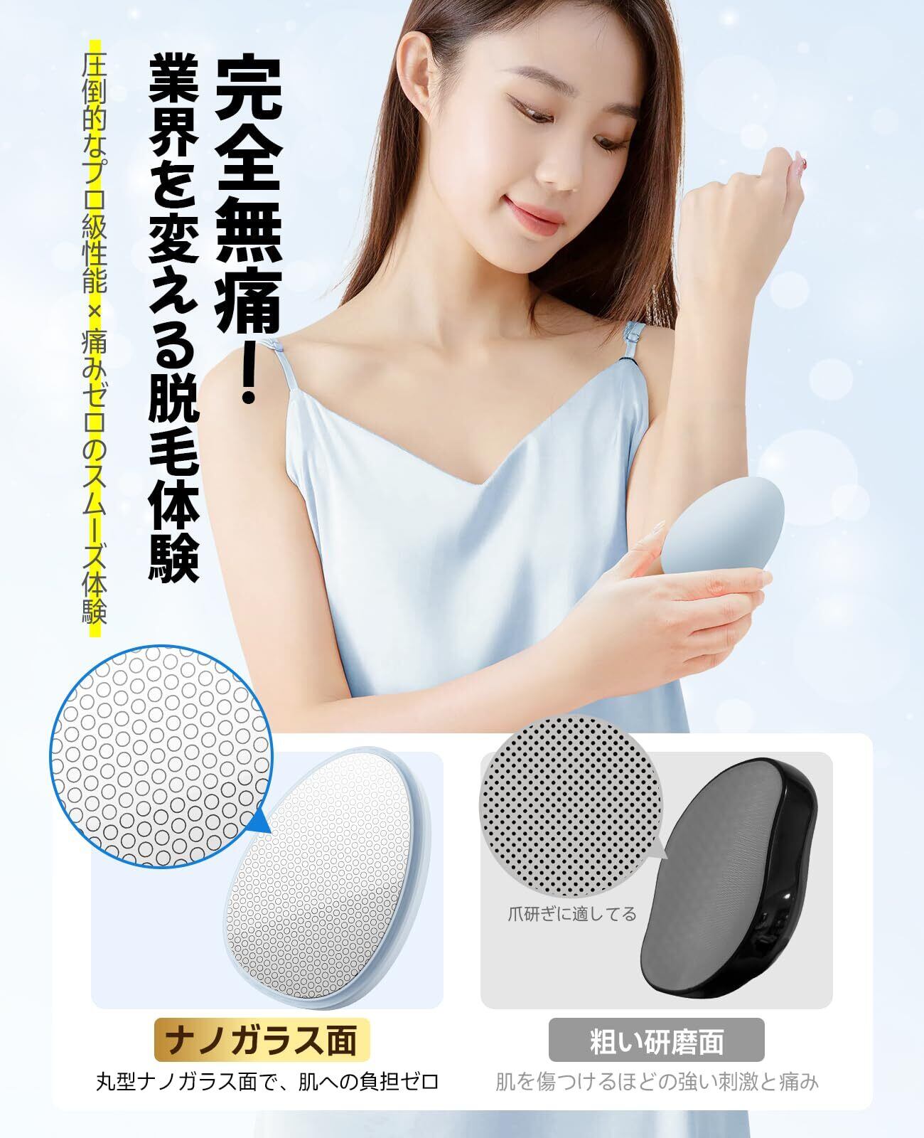 【完全無痛!肌への刺激なしの新世代ナノ脱毛技術】最新のナノガラス技術を採用し、化学成分ゼロでお肌に優しい設計。軽く円を描くようにこするだけで、ムダ毛を痛みなく除去できます。ワックスやカミソリのような刺激や黒ずみも残さず、敏感肌にも安心。サロン要らずで、手軽にすべすべ肌を実現できます。※同じ箇所を長時間使用しないでください。