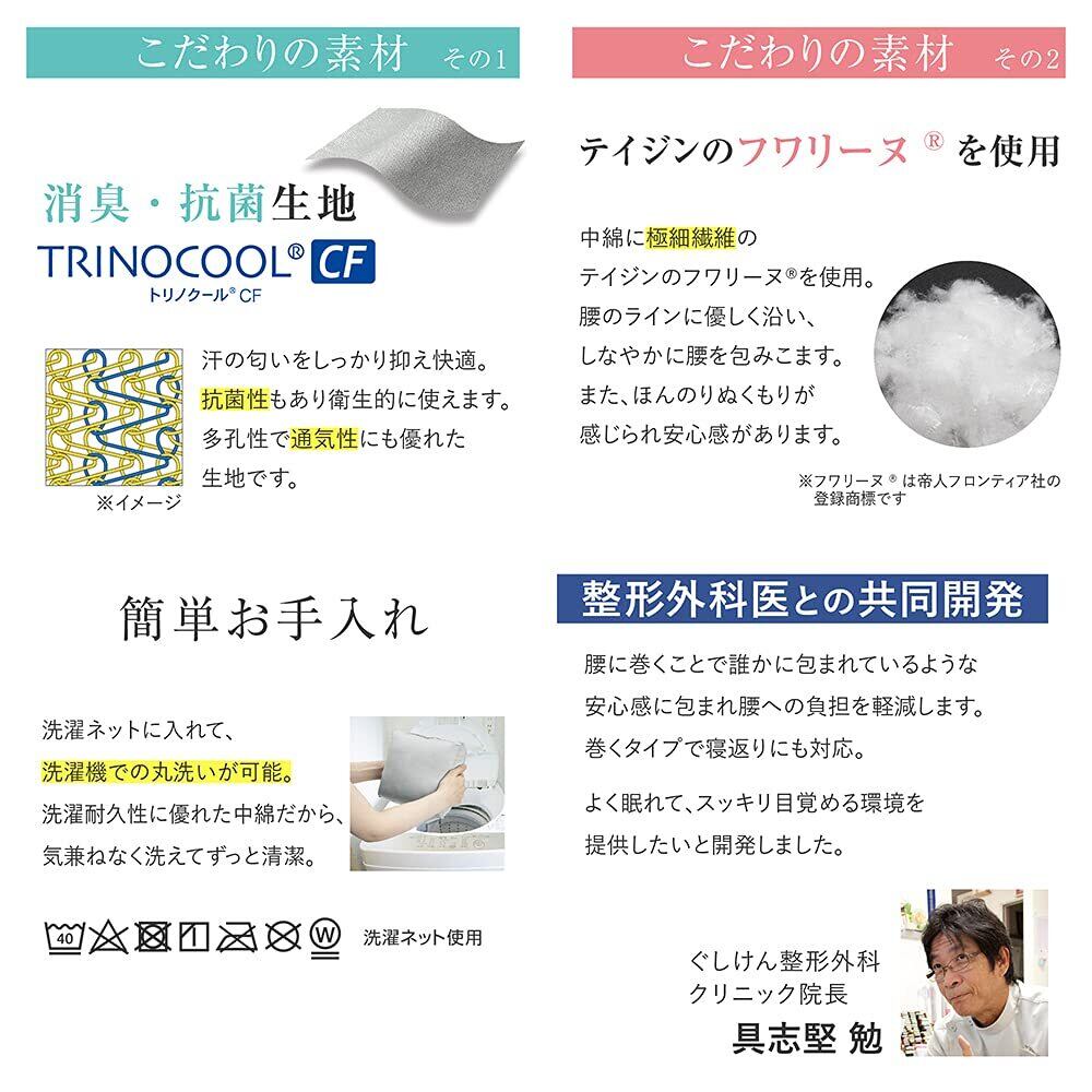 腰に巻くことで誰かに包まれているような安心感に包まれ腰への負担を軽減します。