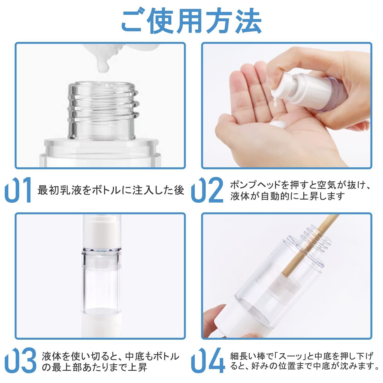 真空ボトル 30ml 20個入り ポンプボトル 化粧品小分けボトル ポンプタイプ エアレス プッシュボトル 温泉 旅行ボトル プラスチック容器 詰め替えボトル 透明 携帯用 液体用 乳液用 旅行用品 漏れ防止