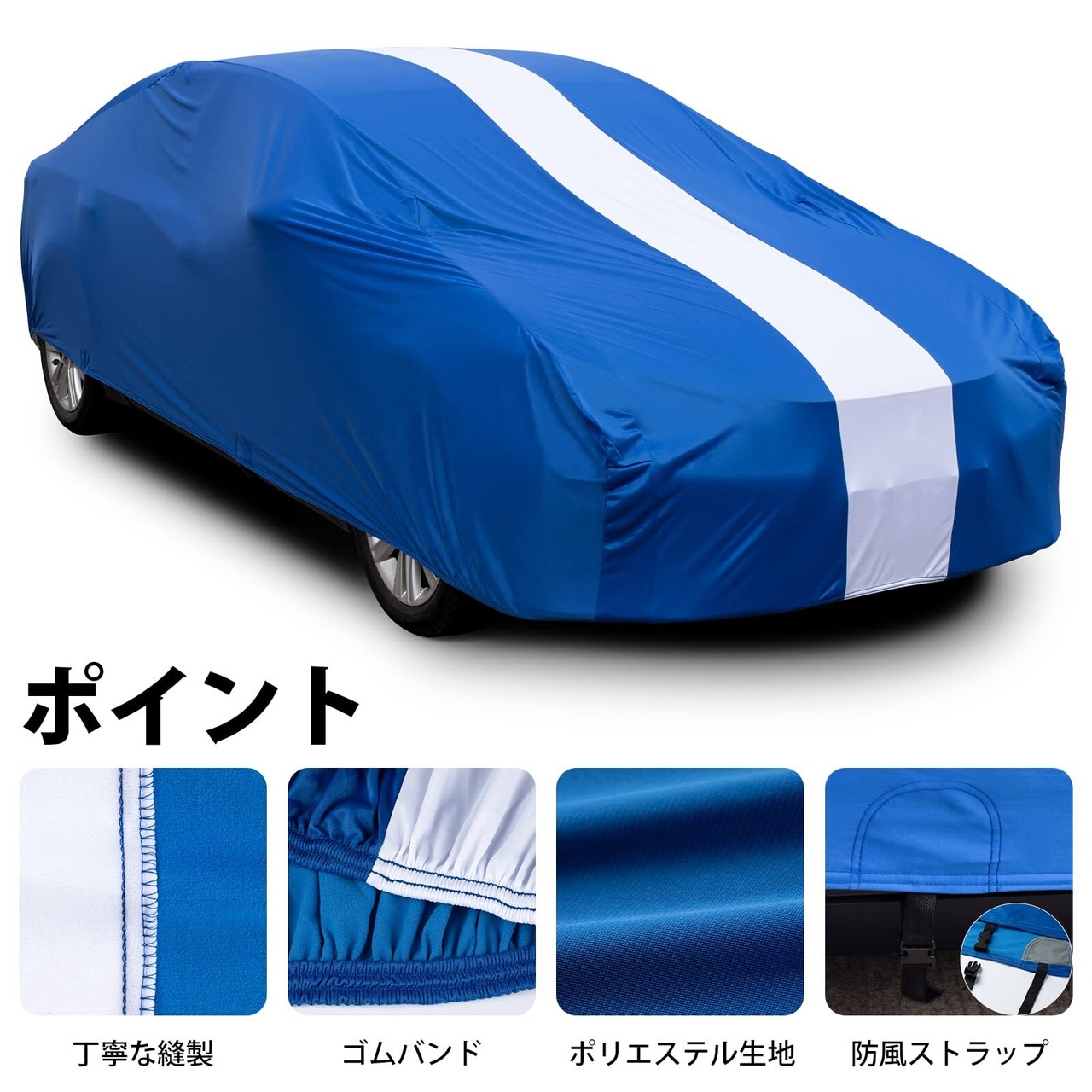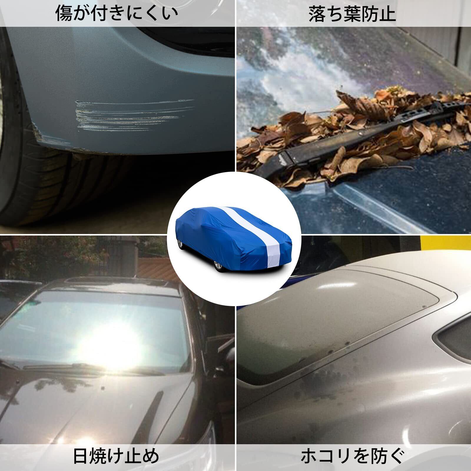 【特価セール】Favoto 車カバー 屋内用車カバー 室内用/車庫内用 ストレッチ素材 汚れ/キズがつきにくい 高い通気性 収納袋付き 汎用サイズ ブルー
