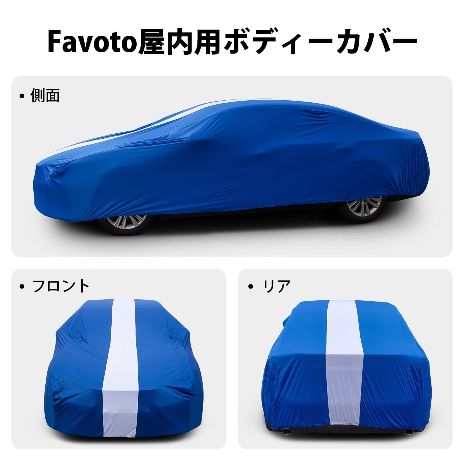 Favoto 車カバー 屋内用車カバー 室内用/車庫内用 ストレッチ素材 汚れ/キズがつきにくい 高い通気性 収納袋付き 汎用サイズ ブルー