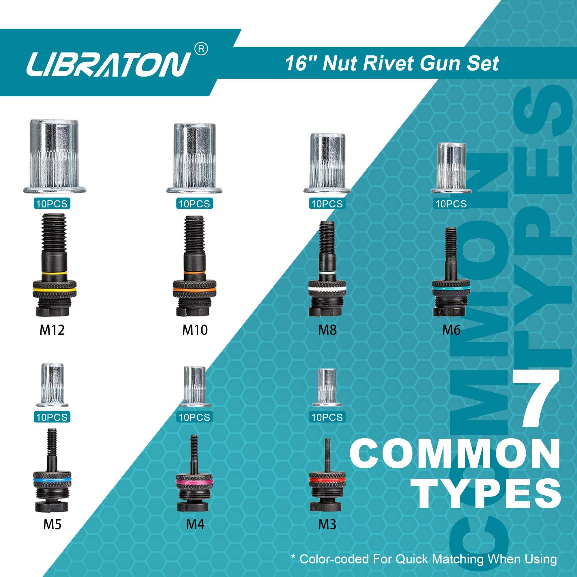 LIBRATON ハンドナッターセット 両手式 M3/M4/M5/M6/M8/M10/M12 ブラインドナット70個入れ ハンドリベットナットツール