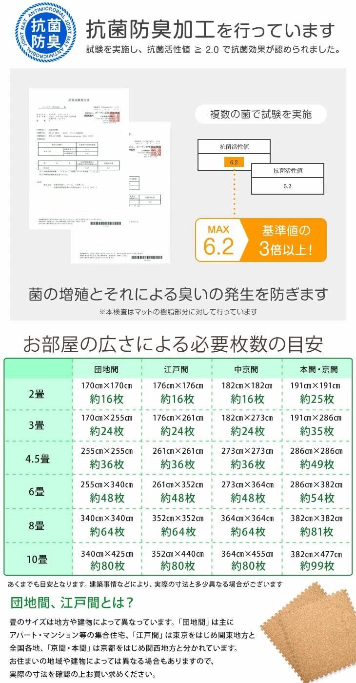 【特価商品】タンスのゲン コルクマット 45cm 厚み10mm 1cm 6畳用 防音 高密度 床暖房対応 低ホルムアルデヒド サイドパーツ付き 48枚組 31800007 10AM (68771) | ニコニコSHOP