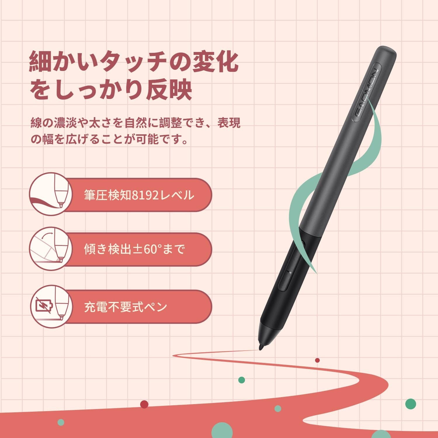 【筆圧8192レベル&充電不要ペン】--ペンは8192レベルの筆圧検知と±60レベル傾き検知に対応しており、自然で繊細な表現でイラストや絵を描くことができます。また、充電不要式なので、電池切れの心配はいりません。環境にもやさしいです。【ペンホルダー&8替芯】--液タブの替芯はペンホルダーに内蔵されています。