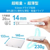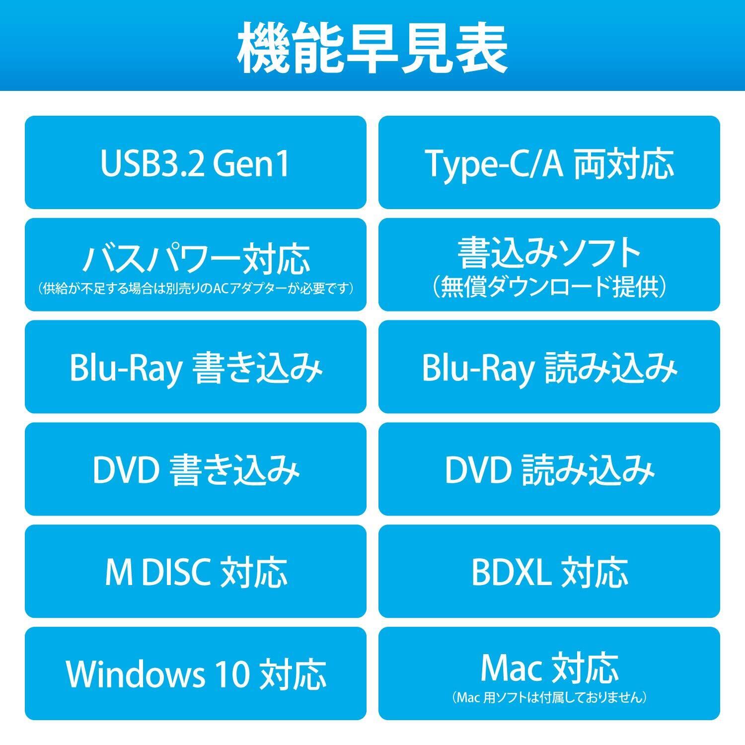 ■ 国内最軽量、最小クラスのコンパクト設計のUSB3.2 Gen1(USB3.0) ポータブルブルーレイドライブ。最大100GBの大容量データのバックアップ、セキュリティ保護機能を搭載した、書き込みソフト付き。カラーはホワイト。