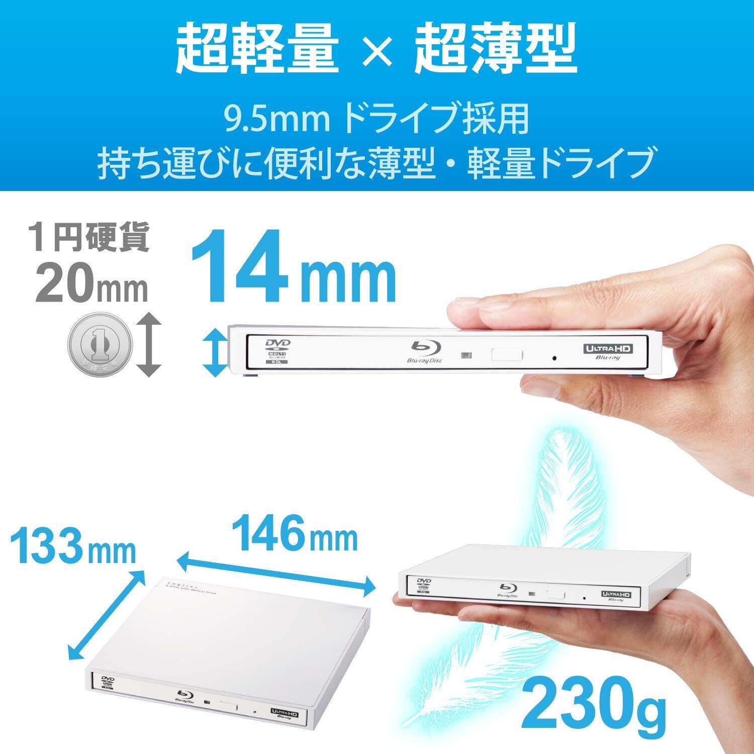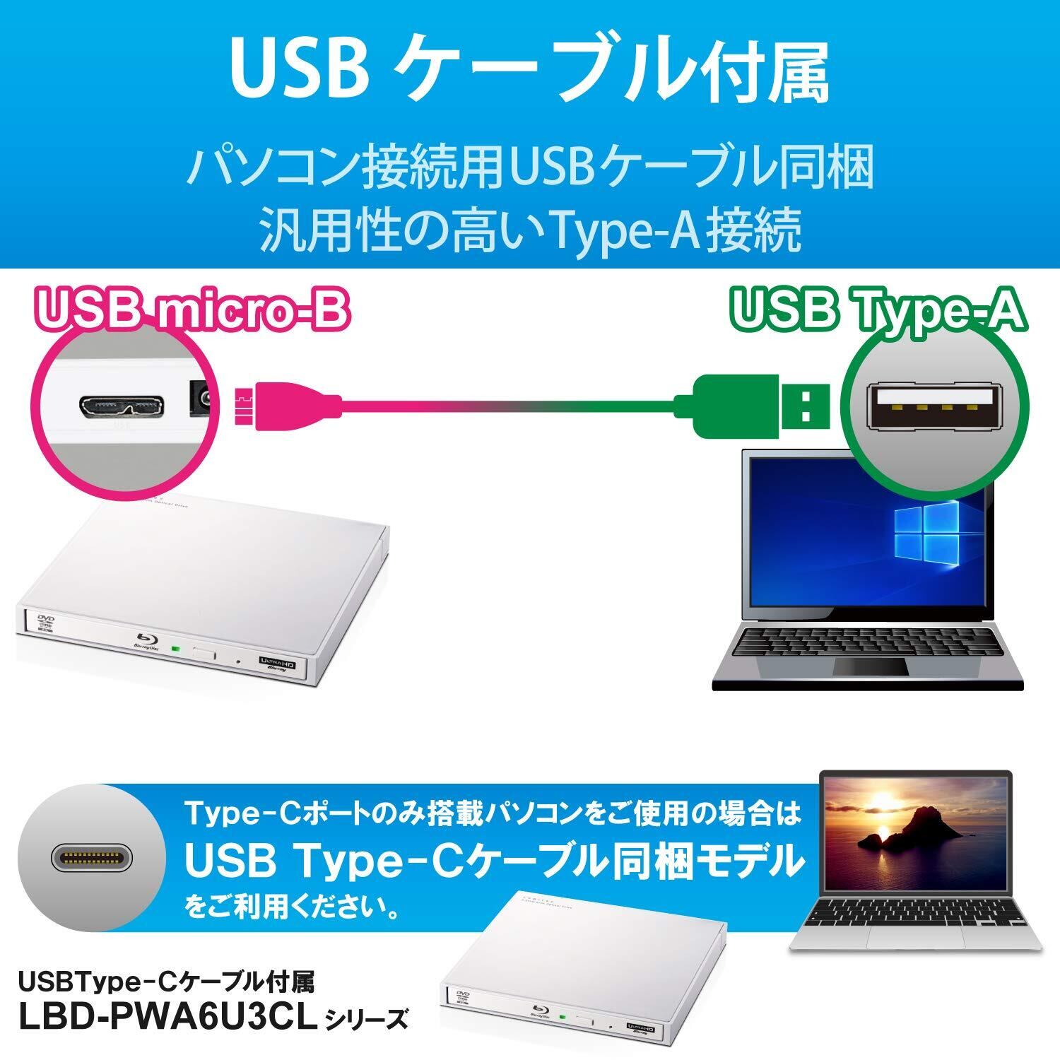 ロジテック 外付け ブルーレイドライブ USB3.2 Gen1(USB3.0) UHD BD対応 書込ソフトCyberLink Power2Go付 ホワイト LBD-PWA6U3LWH