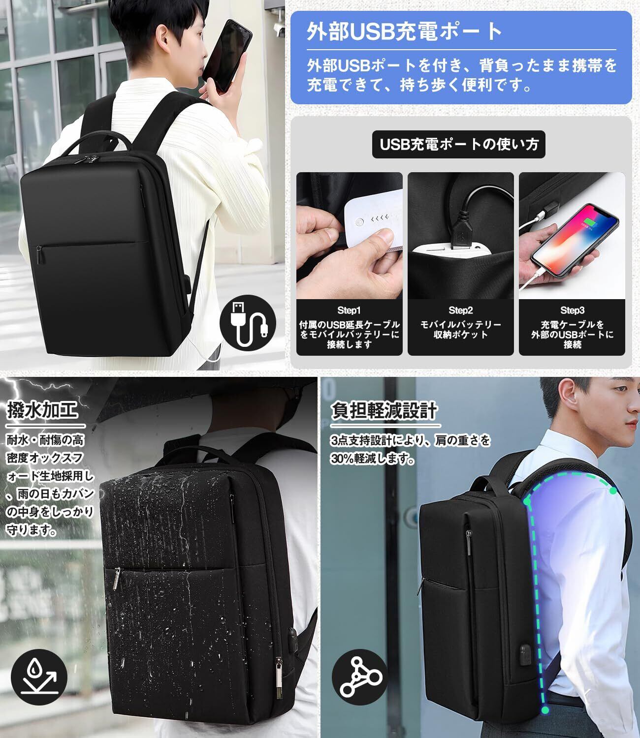 [YESLAU] リュック ビジネスリュック メンズ 大容量 防水 バックパック リュックサック PC 通学 通勤 高校生 A4 USB充電ポート 15.6インチPC 多機能 人気 出張 旅行 父の日 おしゃれ