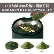 茶葉を手軽に粉茶に。茶葉を入れてスイッチを押すだけの簡単操作。1回に 約 10 g( 大さじ 2杯 )の緑茶を、1分少々の短時間で微粉末にします。
