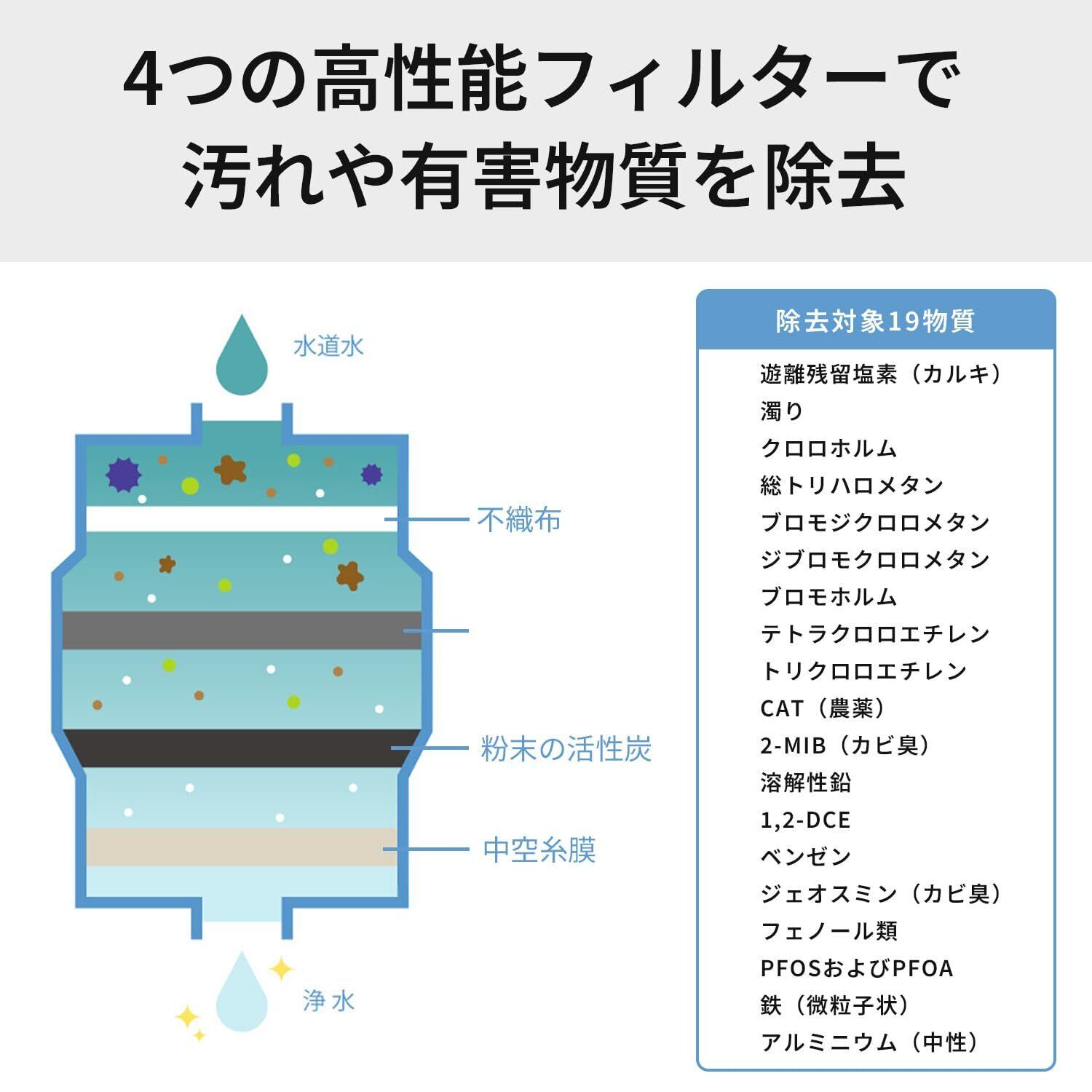 長持ちカートリッジ(交換目安:約6ヵ月または2000L)※で、交換の手間を低減。
