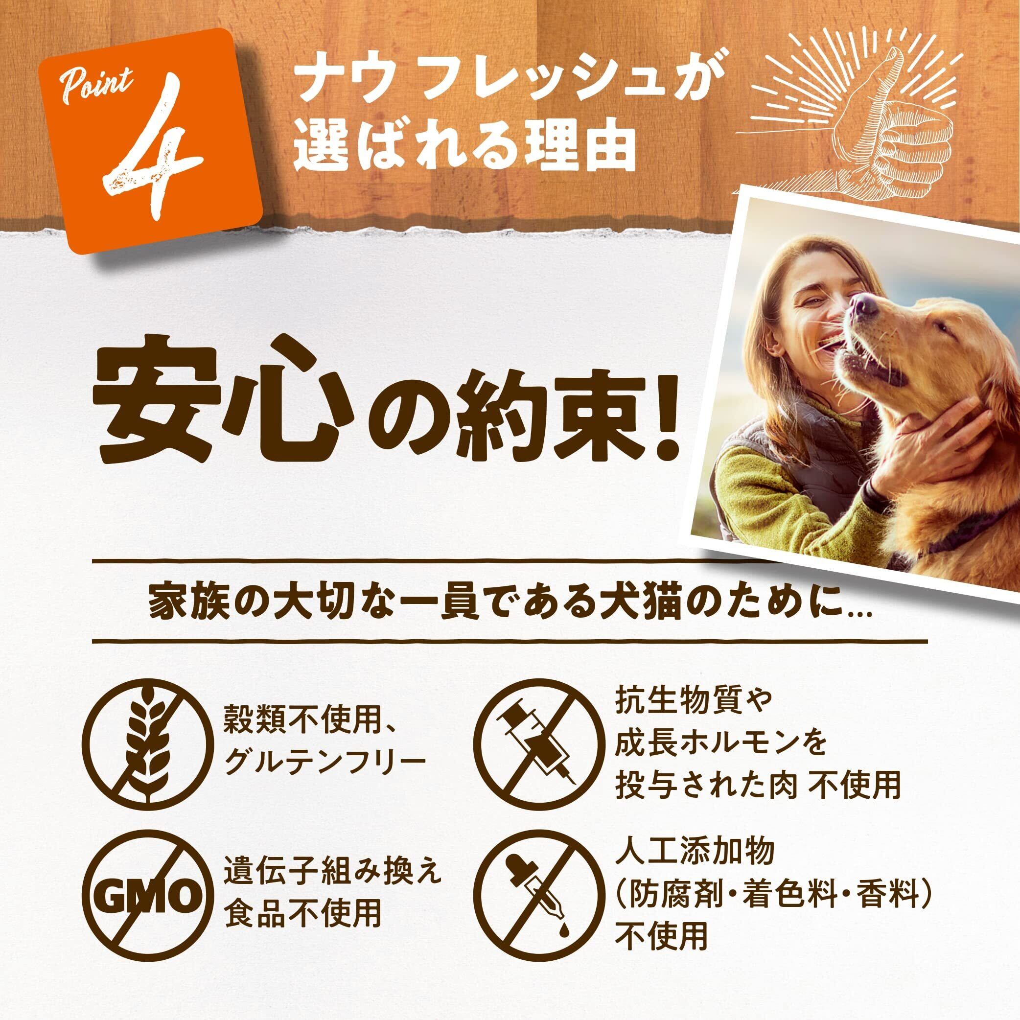 【新鮮という品質をお届け】ナウフレッシュは、家族の大切な一員である愛犬のために、トコトン新鮮にこだわったナチュラル×ミールフリーのプレミアムフードです。