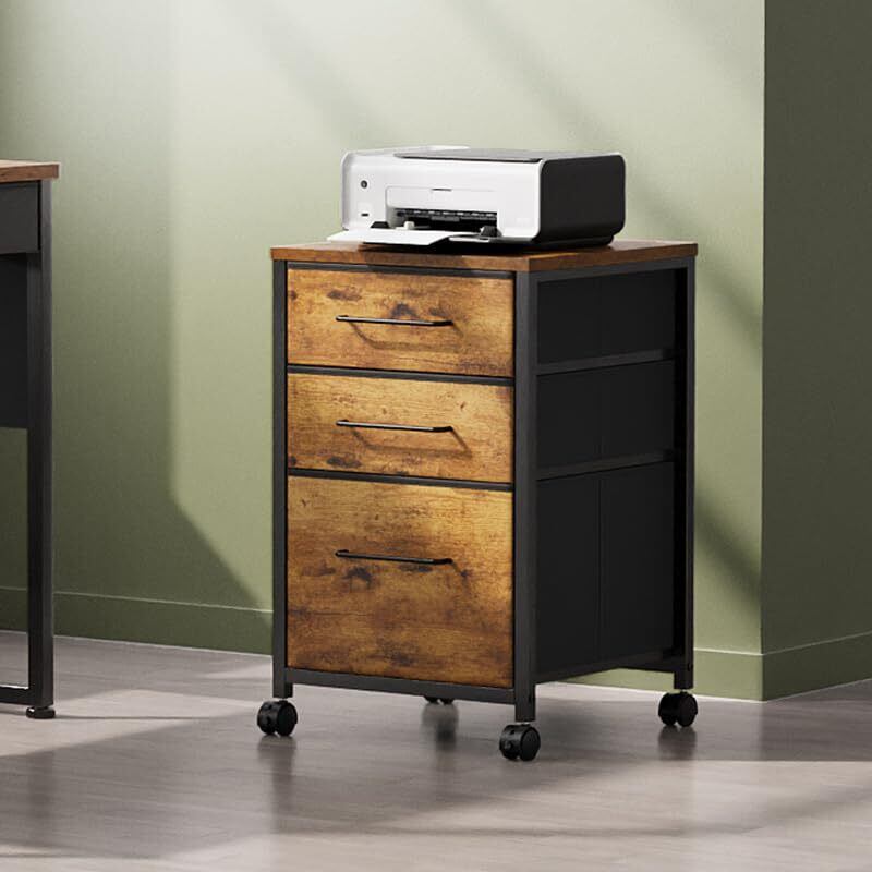 Maihail デスクワゴン サイドワゴン キャスター付き キャビネット 木目調の布製引き出し サイドチェスト 袖机 3段 A4対応 大容量 オフィスワゴン 幅398*奥行398*高さ655mm ビンテージ